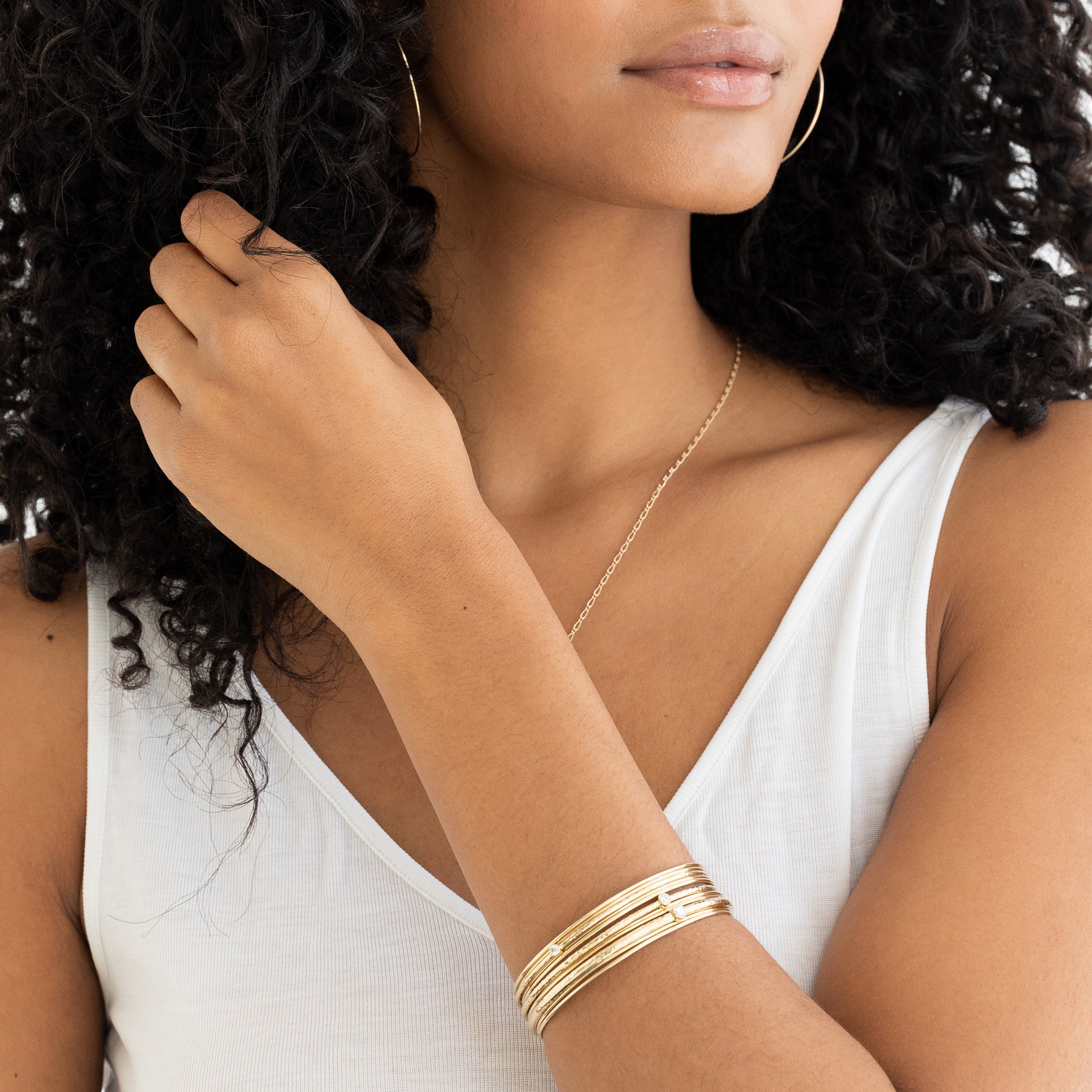 Our Bangles are made in a range of custom sizes to fit your wrist perfectly. We believe jewelry should be uniquely made to fit comfortably enough to wear every day, year after year.