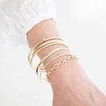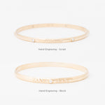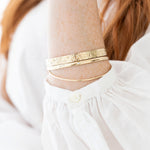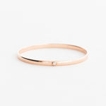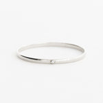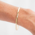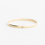 The Milestone bangle customized with one to six bezel set diamonds. For a textured finish, add hammering. A 4mm solid 14k gold half round bangle with a flat interior.
