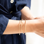 Ready to add to cart but not sure about size? Start with a sizing kit! Select “Send A Sizing Kit First" to pre-purchase your bangle. This kit contains everything you need to find your perfect fit and detailed instructions on how to complete your order.