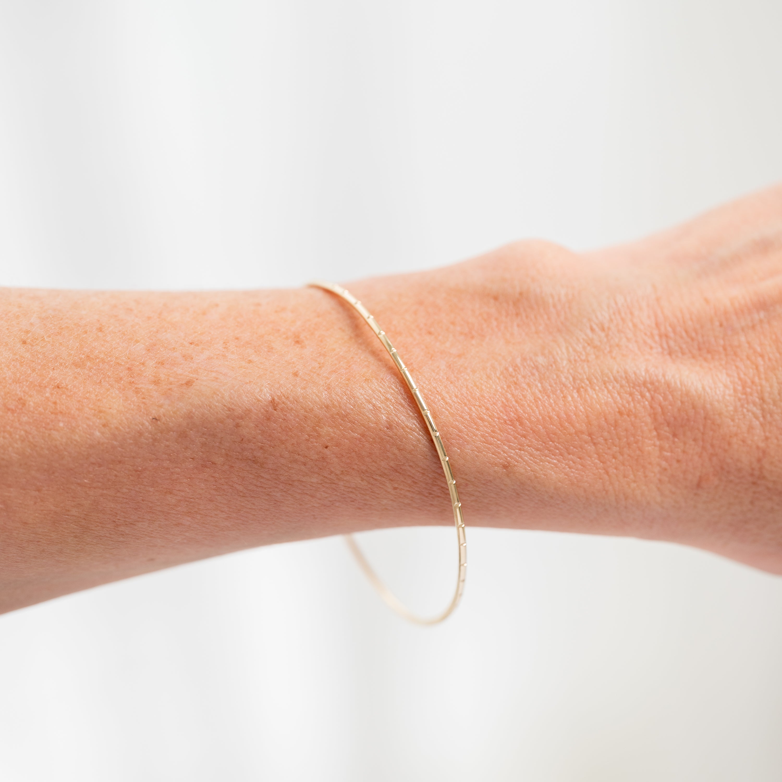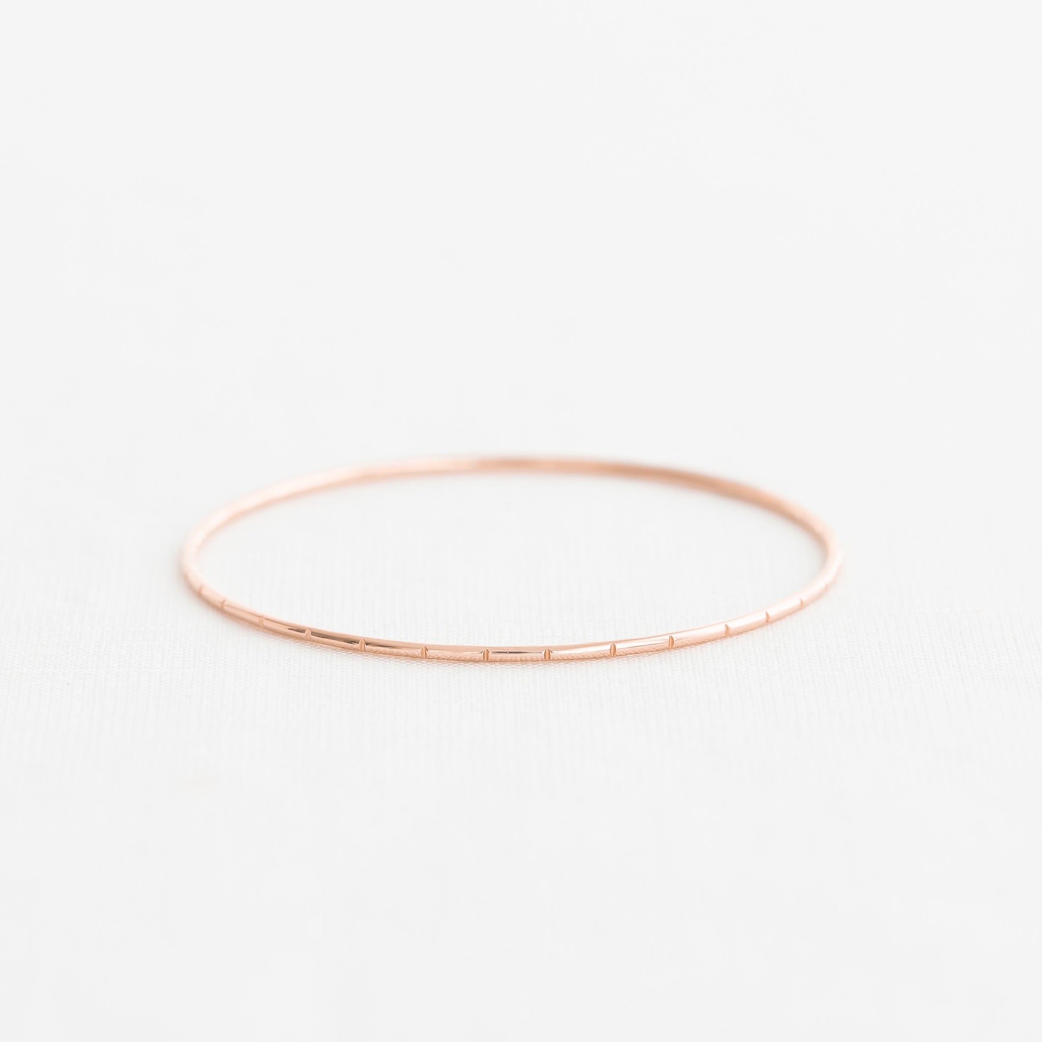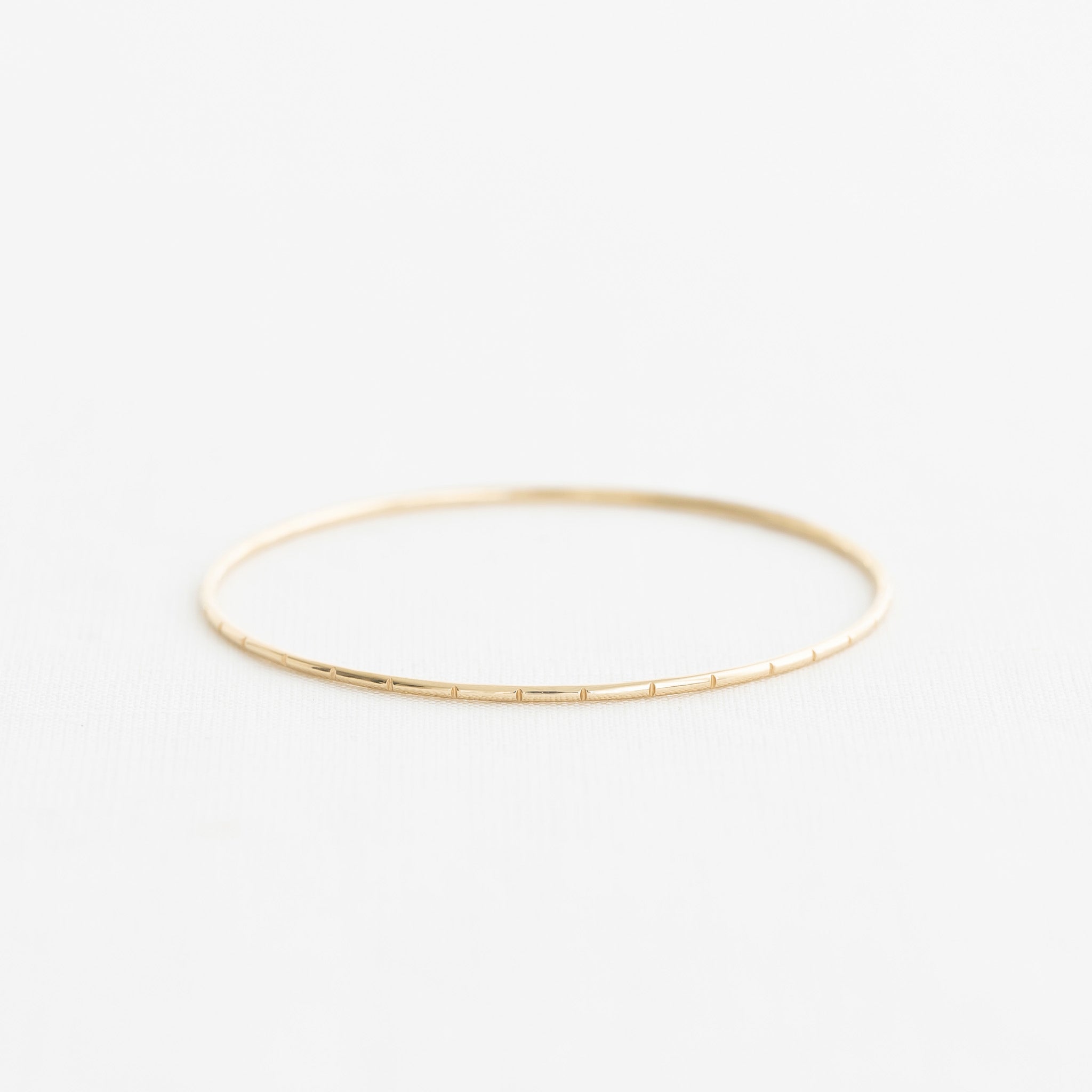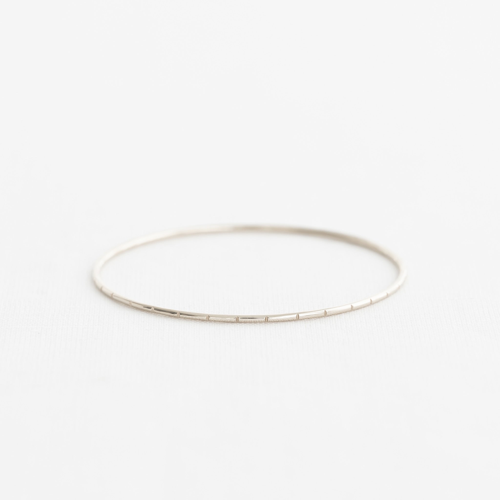 Evenly Spaced: Without a specific number or pattern, notches are spaced evenly around the bangle for a classic textured look.