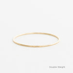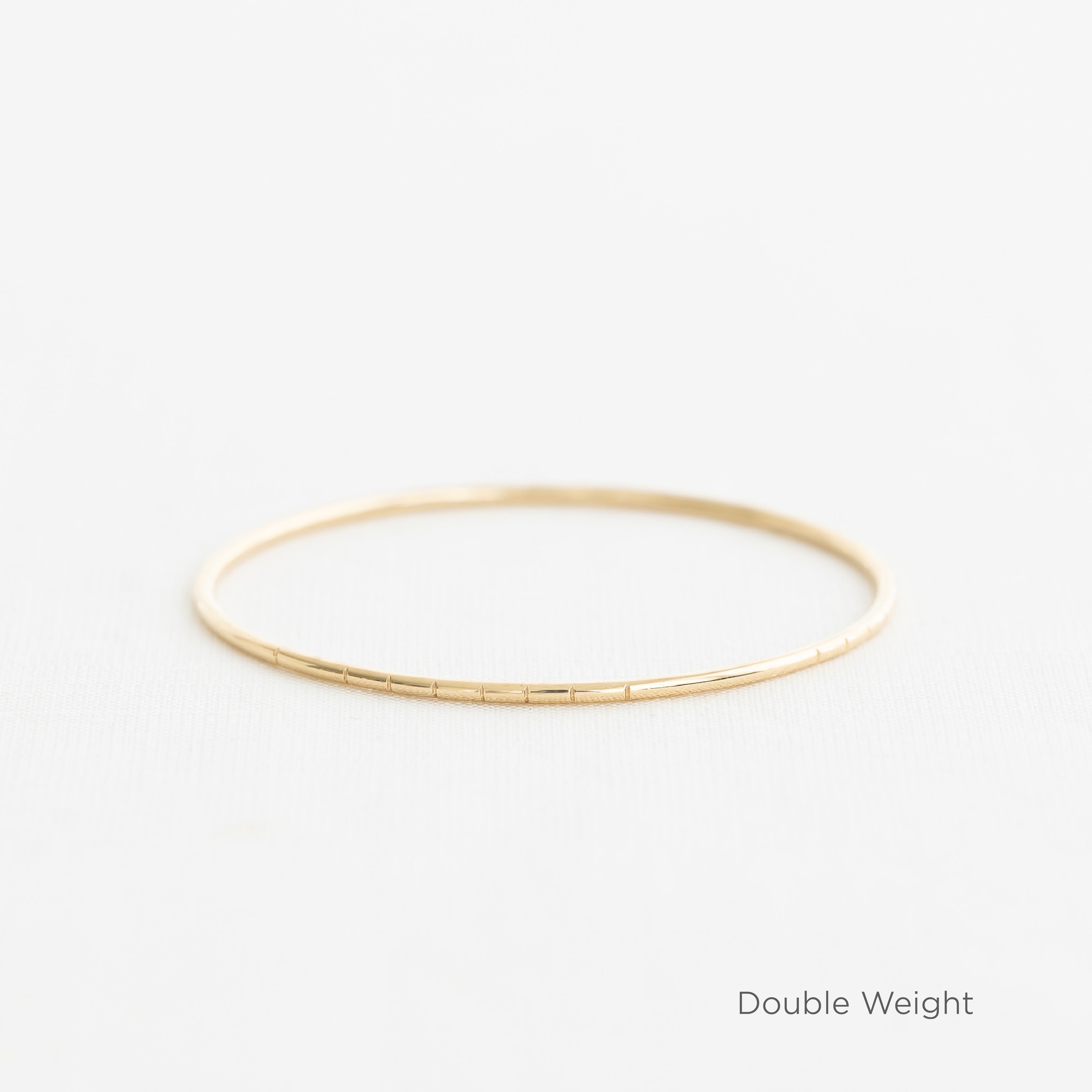 The Heavy Weight (1.6mm) or The Double Weight (2mm) solid 14k gold bangle customized with hand-notched markings that can symbolize a date or a significant number in your life.