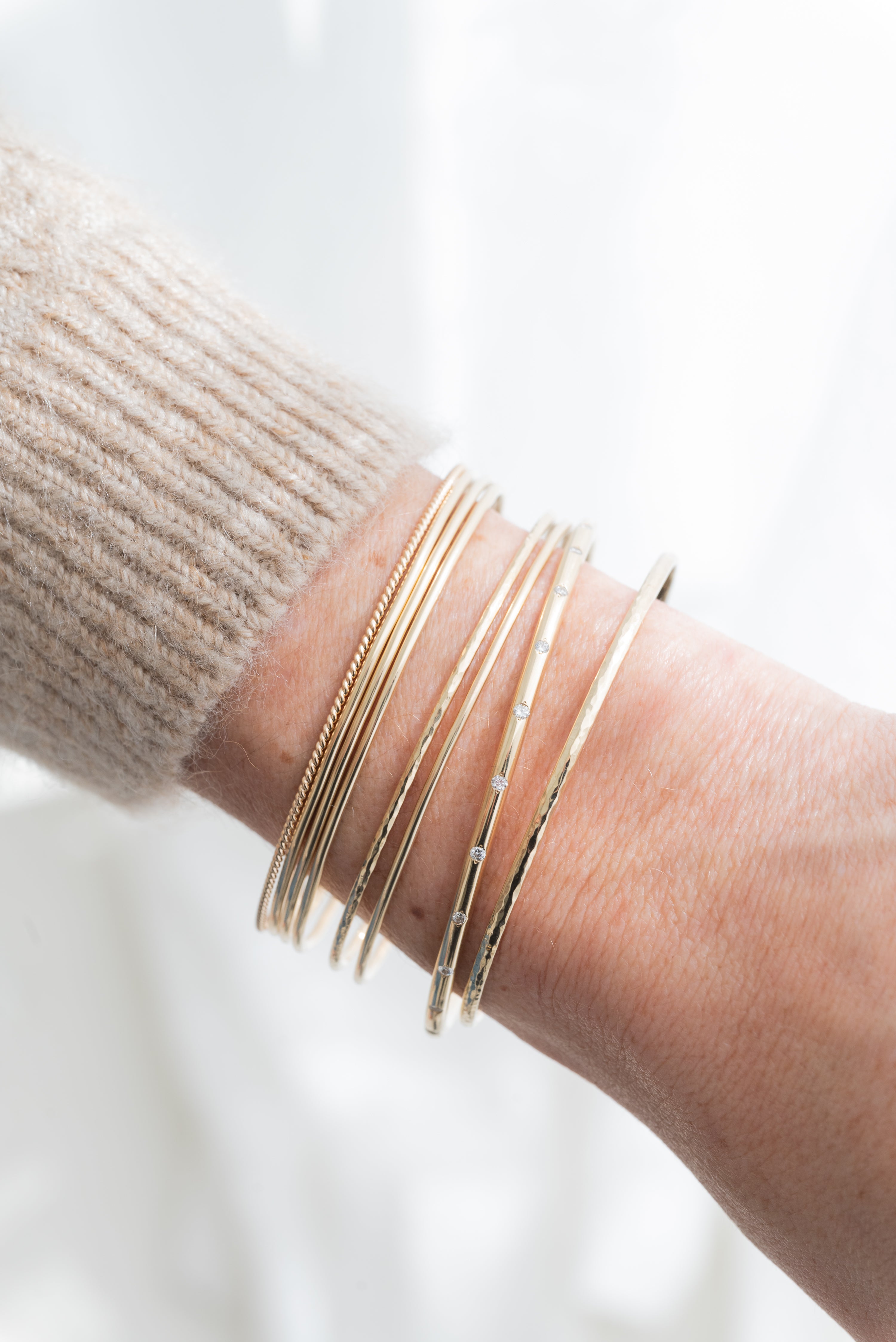 The Original Bangle is still the basis of the collection which has grown to include a range of 14k gold styles that are customizable and unique, so that women can tell their stories.