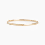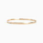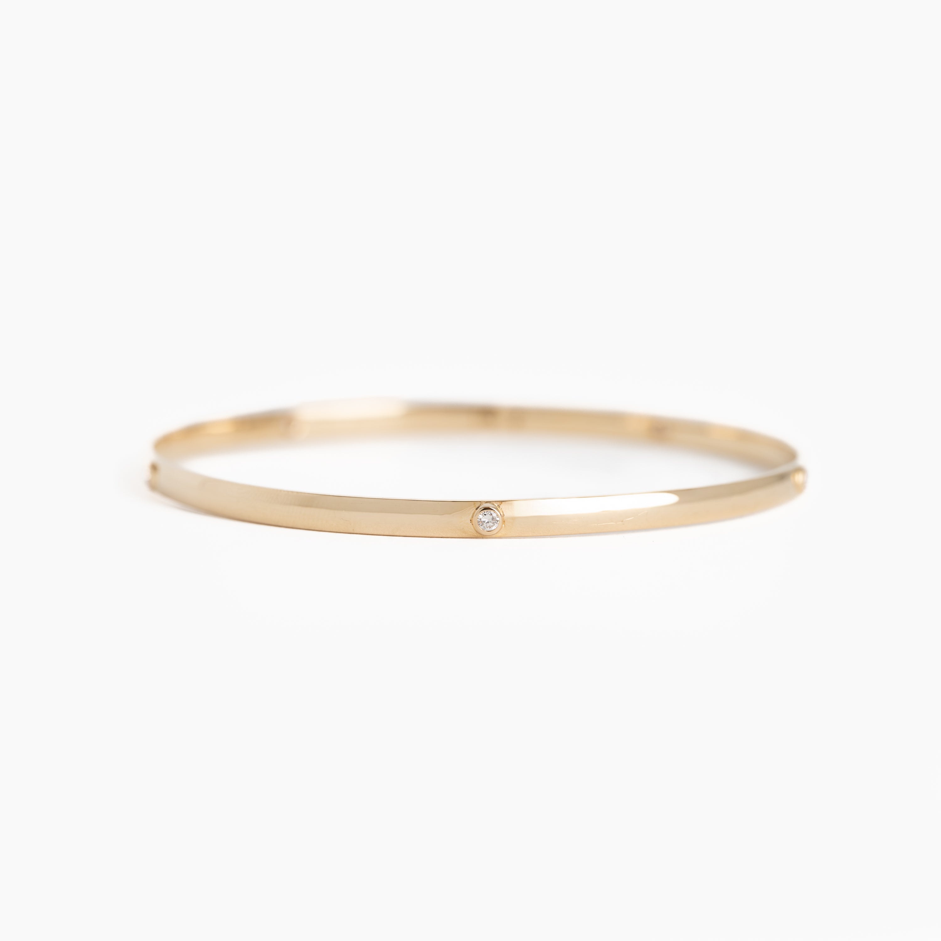 The Milestone bangle customized with 5 bezel set diamonds. A 4mm solid 14k gold half round bangle with a flat interior.