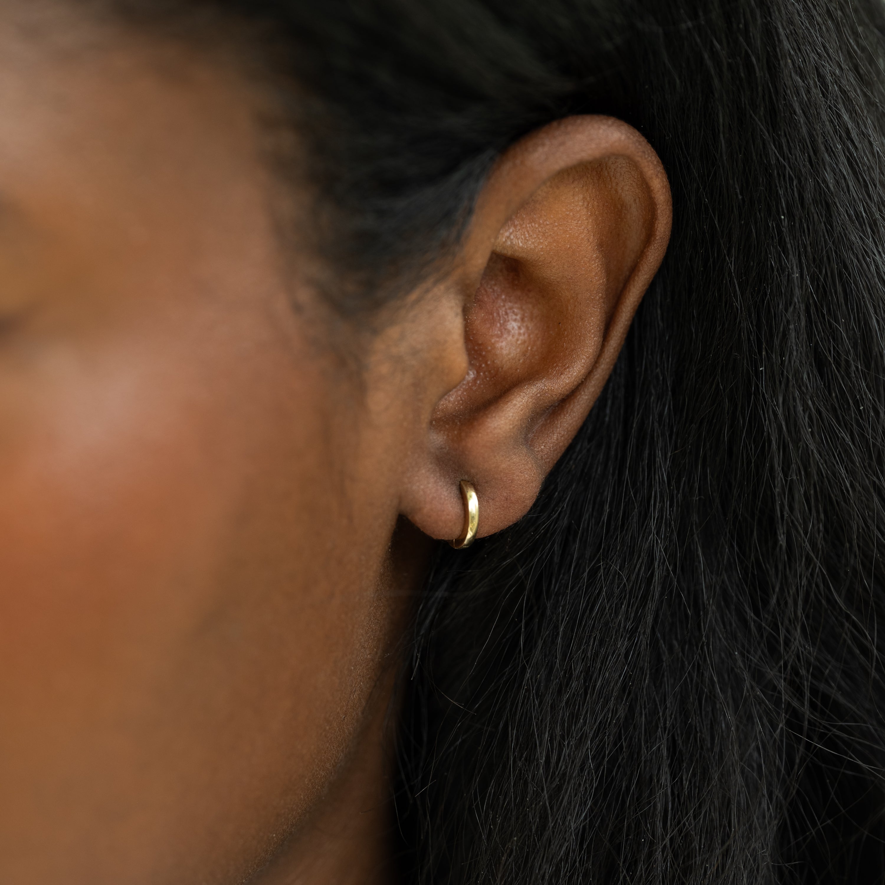 A pair of 10 x 1.65 mm huggie earrings. These are similar to our Mini Gold Hoops but a smaller width.
