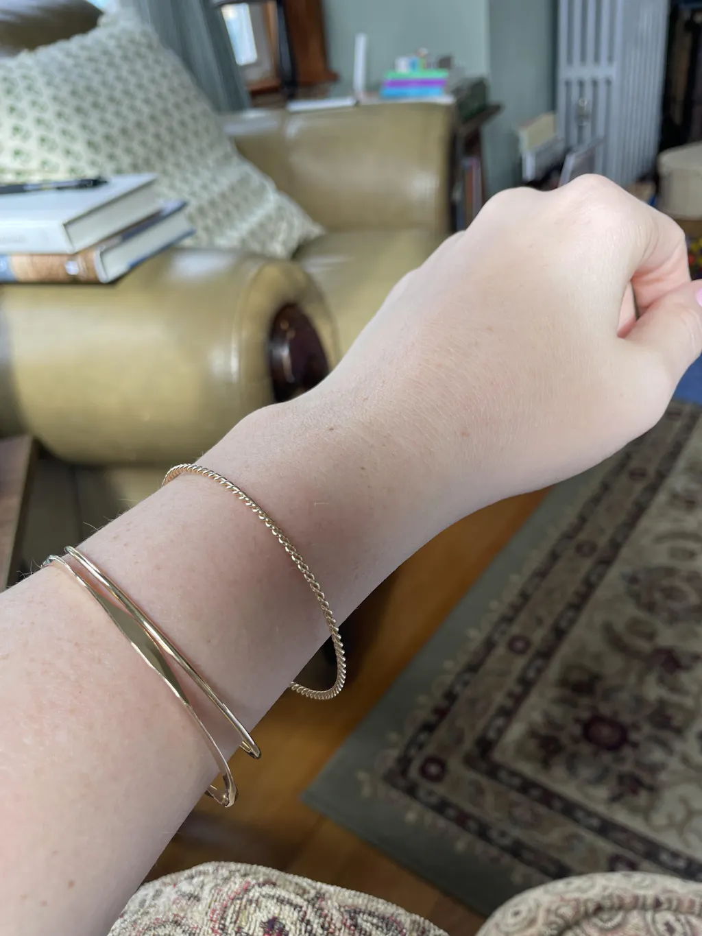 The Classic Twist is my favorite bangle so far. I started my stack late and only have 4 so far. I have other 14k bracelets that I’m hoping to replace with Yearly Co bangles. I remove mine regularly (mainly because of my other/older bracelets), so I prefer a size that isn’t too difficult to remove. I would buy one of everything if I could!