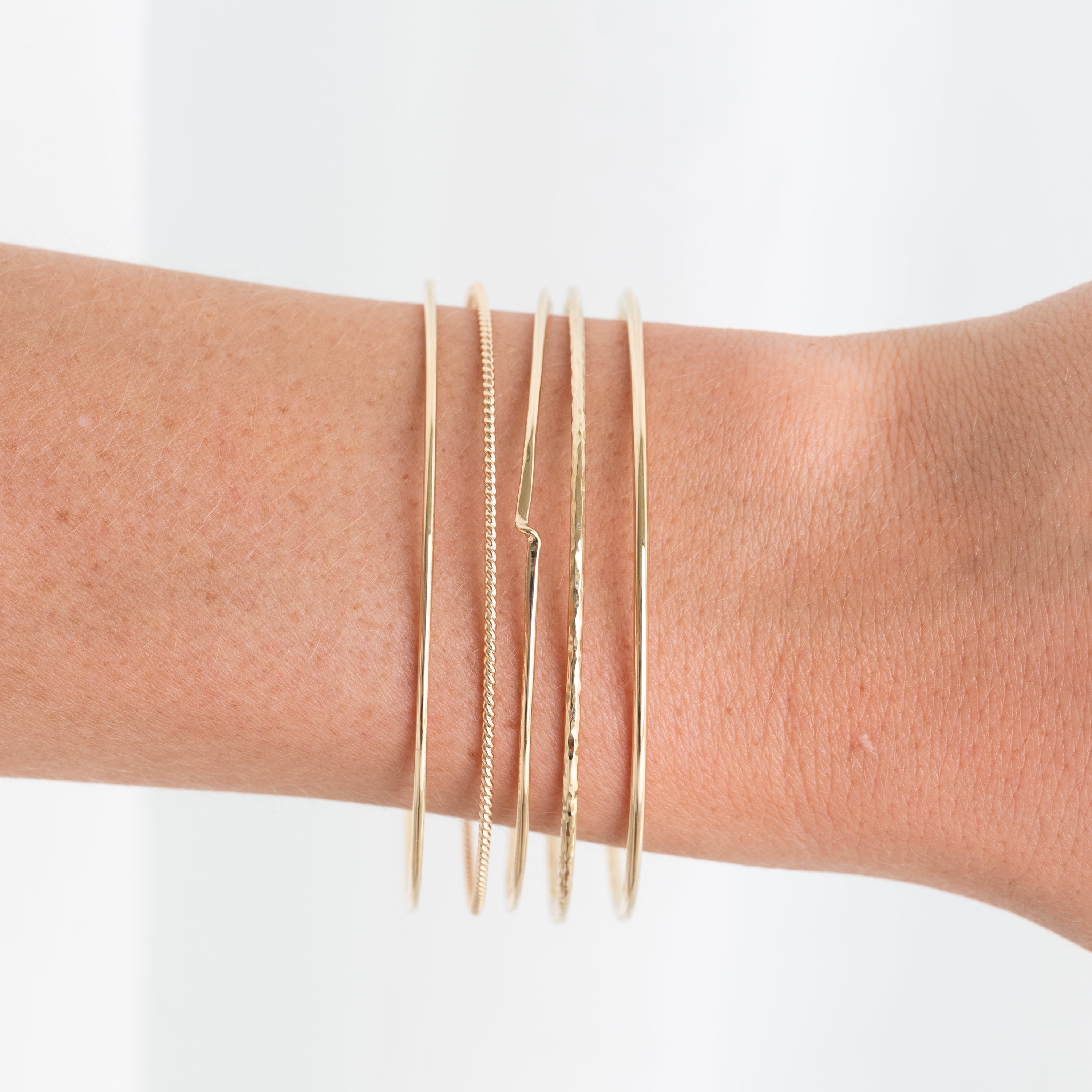 I am obsessed with these bangles. I love the Crest. I bought one for each of my daughters and daughter in law to symbolize life’s ups and downs and told them to concentrate on the ups. Since buying the Crest, I purchased the Mixed Metals Twist, the Beloved, with my grands initials on it and Hammered Milestone. Not pictured are the Birthstone Bangles for each grandchild that I will gift to them. Thank you Ann for having the courage to start Yearly Co and passing on your family traditions to us!
