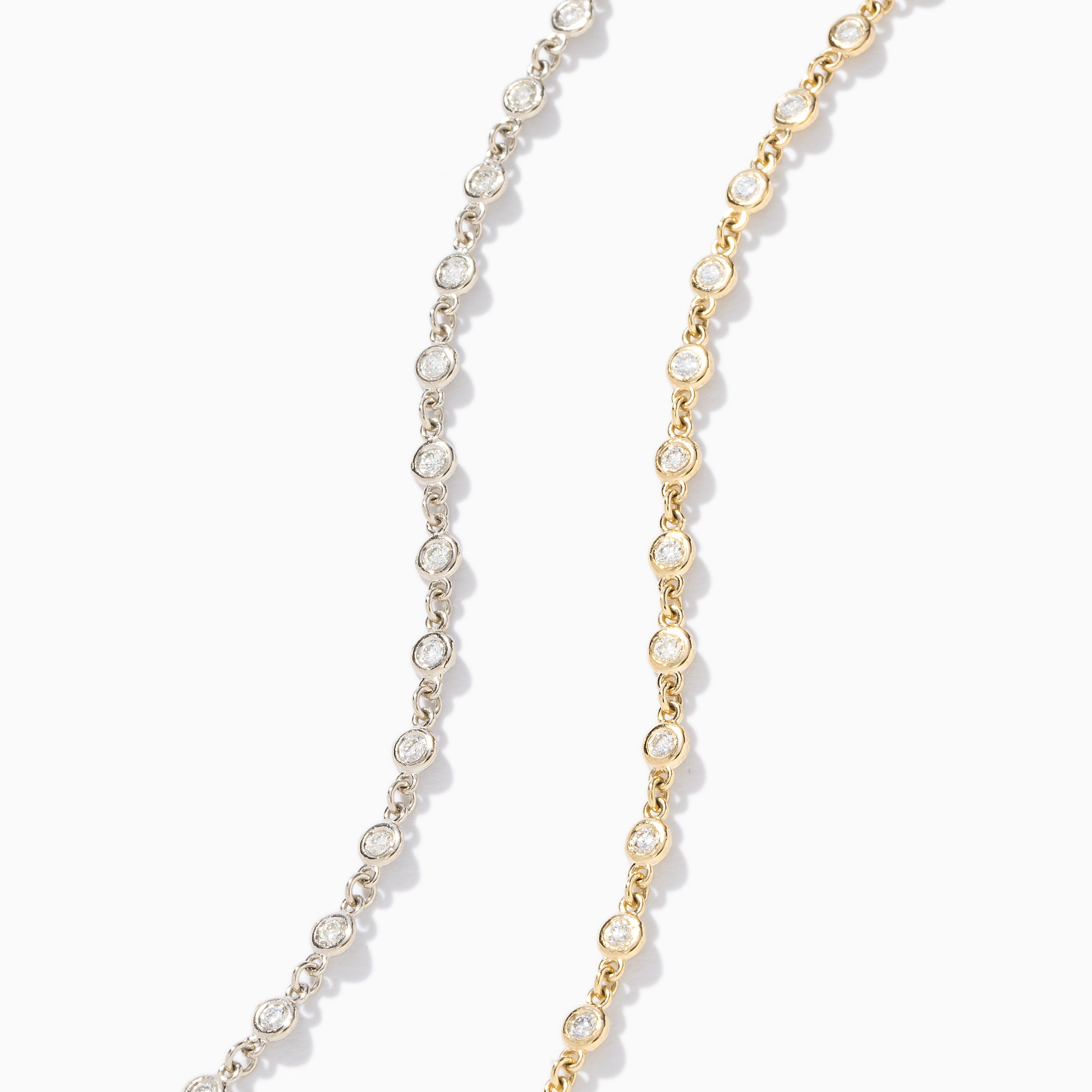 A delicate strand of bezel-set diamonds designed to shine every day. Crafted in solid 14k gold, this necklace adds subtle sparkle to your neckline, beautiful on its own and effortless to layer with your favorite pieces.