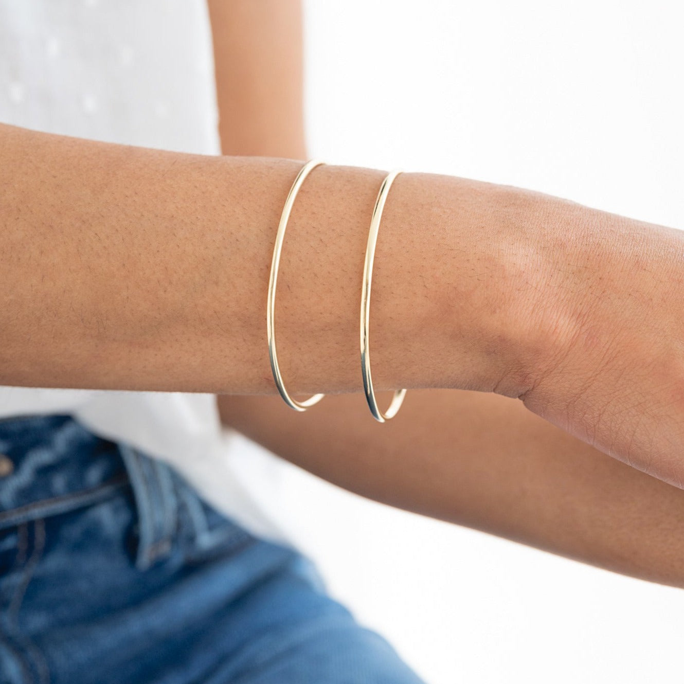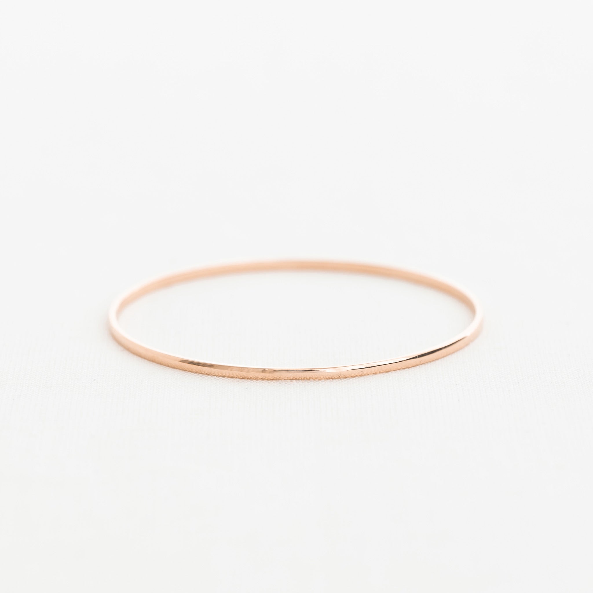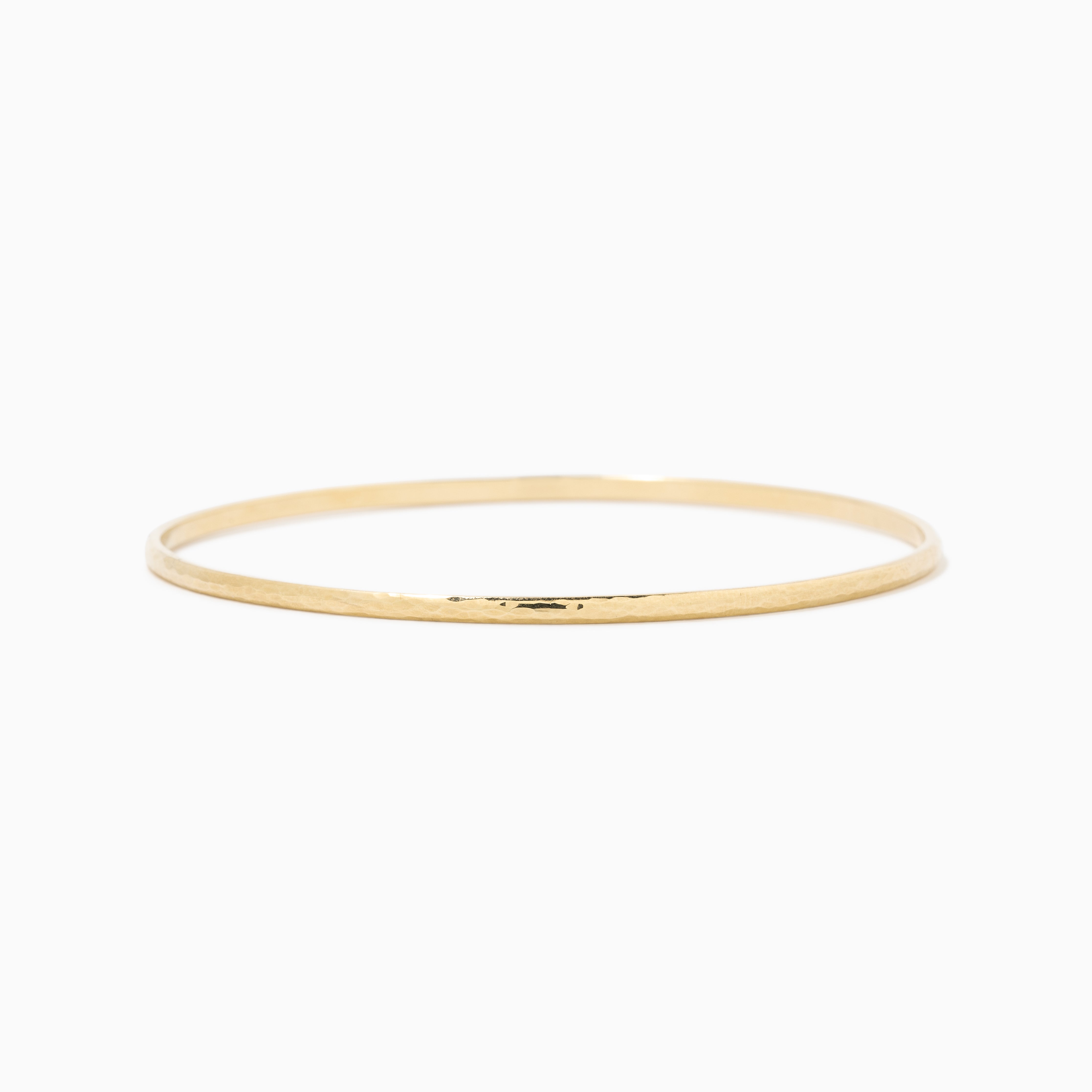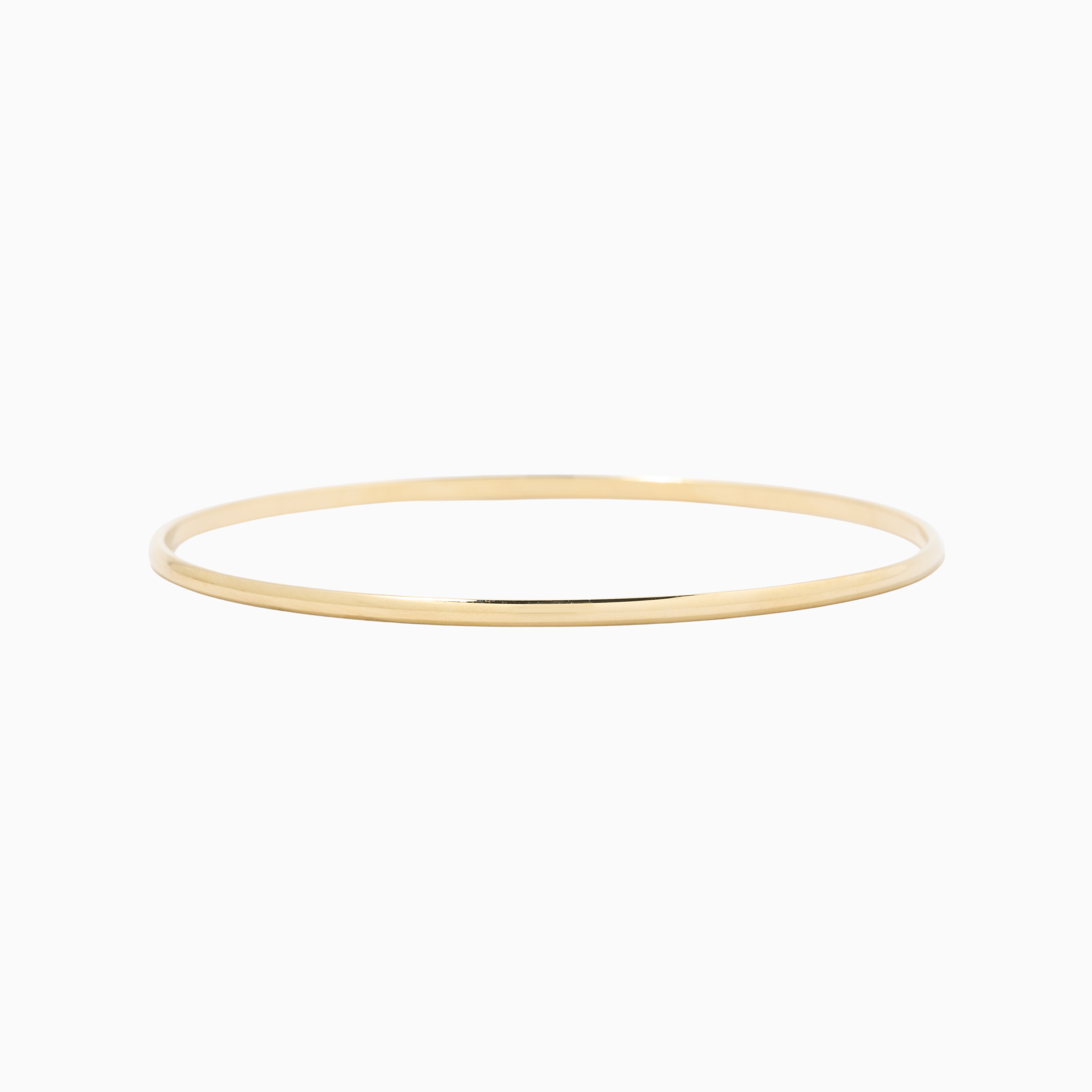 A 2.25mm solid 14k gold half round bangle with a flat interior.