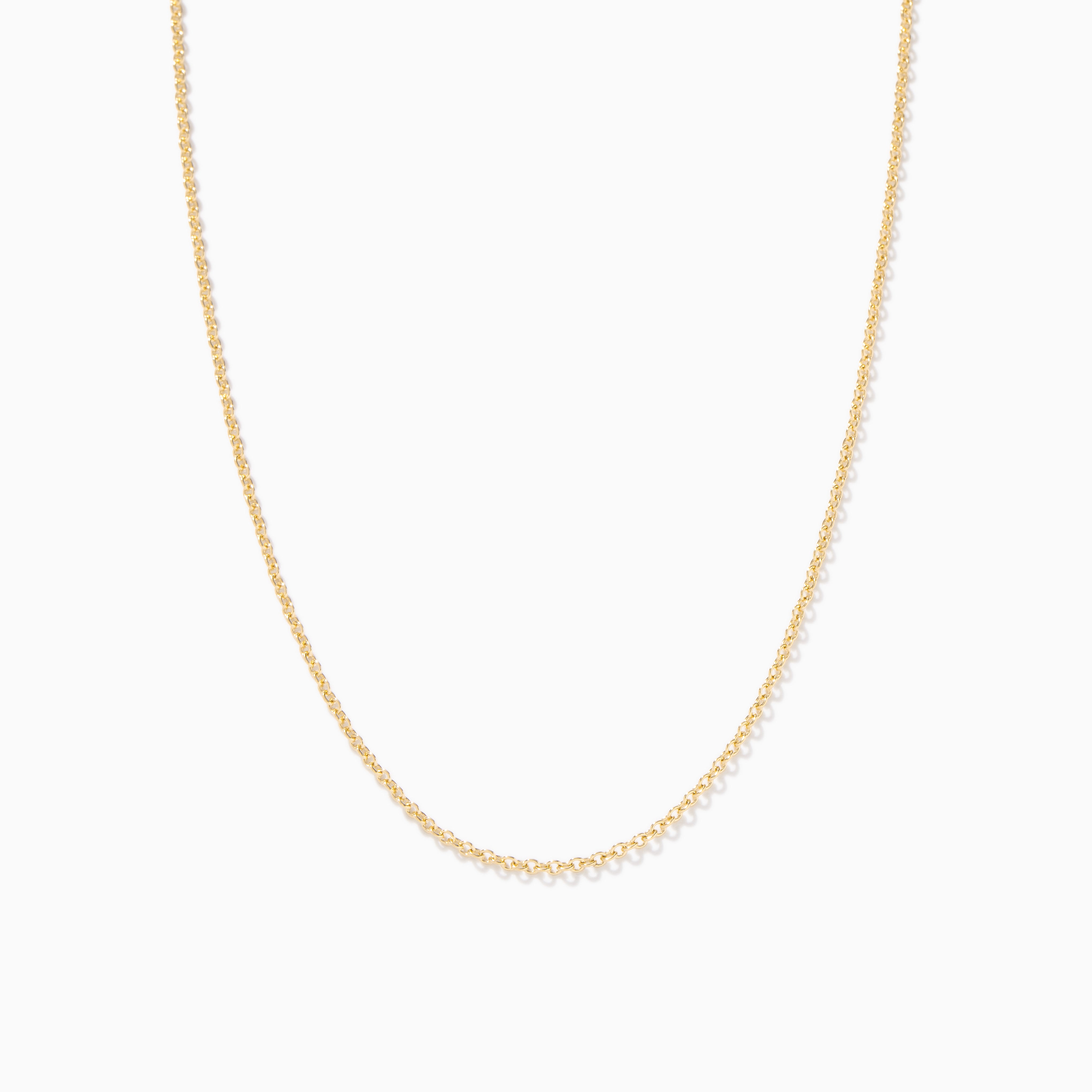 Solid 14k gold 1.3mm cable chain with a lobster clasp. Available in a 16-18" adjustable or 20" chain length.