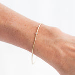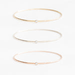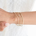 The Heavy Weight bangle customized with 1-6 bezel-set diamonds. For a textured finish, add hammering. A 1.6mm solid 14k gold bangle.