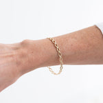 This is a very special bangle inspired by the wavy gold edges of Susan Gordon’s signature hand made pottery. Susan and I met at an event and became very close as business owners and friends in a Mastermind group together through the rollercoaster of 2020. We have always loved to share the “ups and downs” involved in life as a creative entrepreneur and when we created this delicate wavy design in a bangle we knew it was something we had to share with our customers.