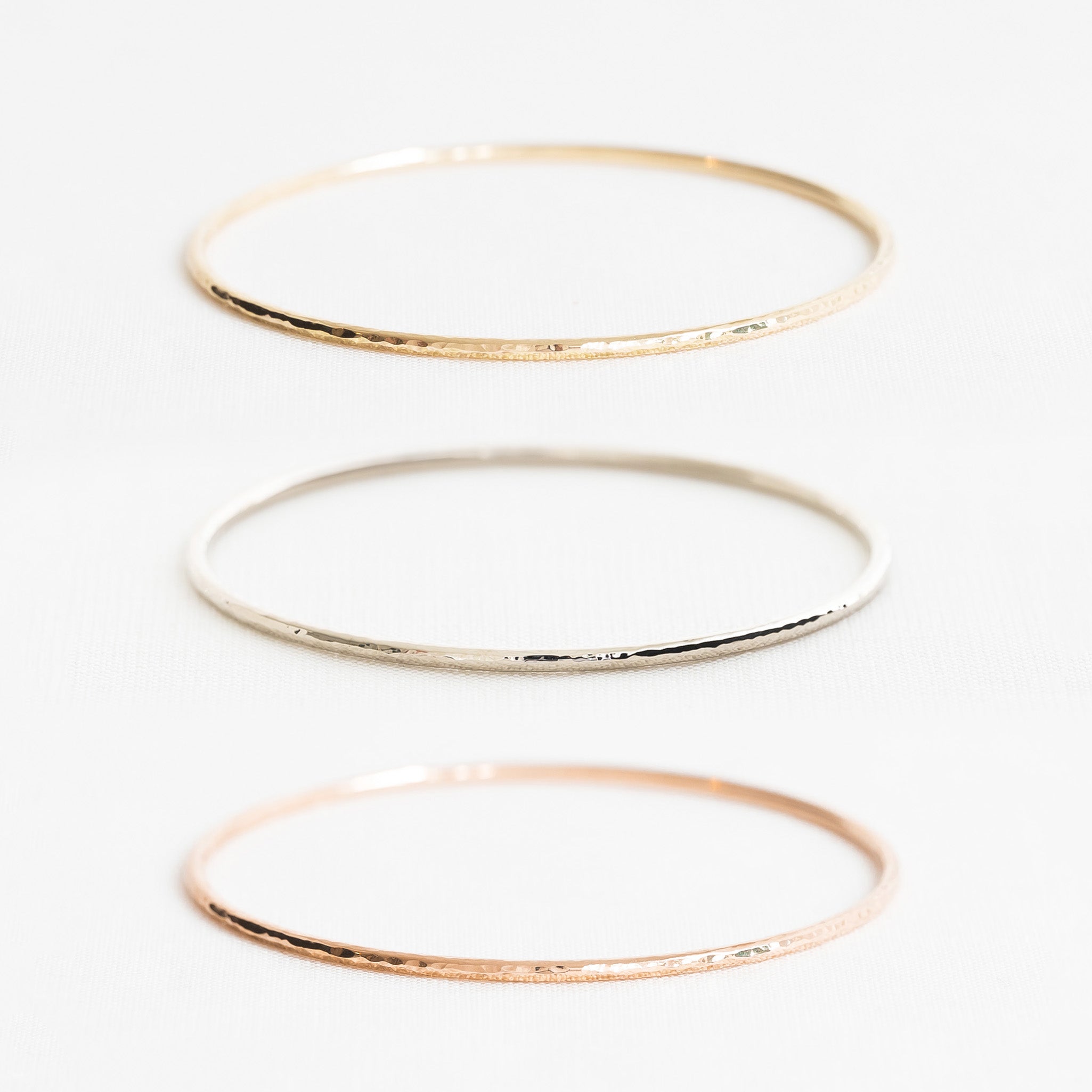 The Double Weight is almost two times the width of The Original bangle. Ideal for a perfectly round bangle with zero bounce. A 2mm round solid 14k gold bangle.