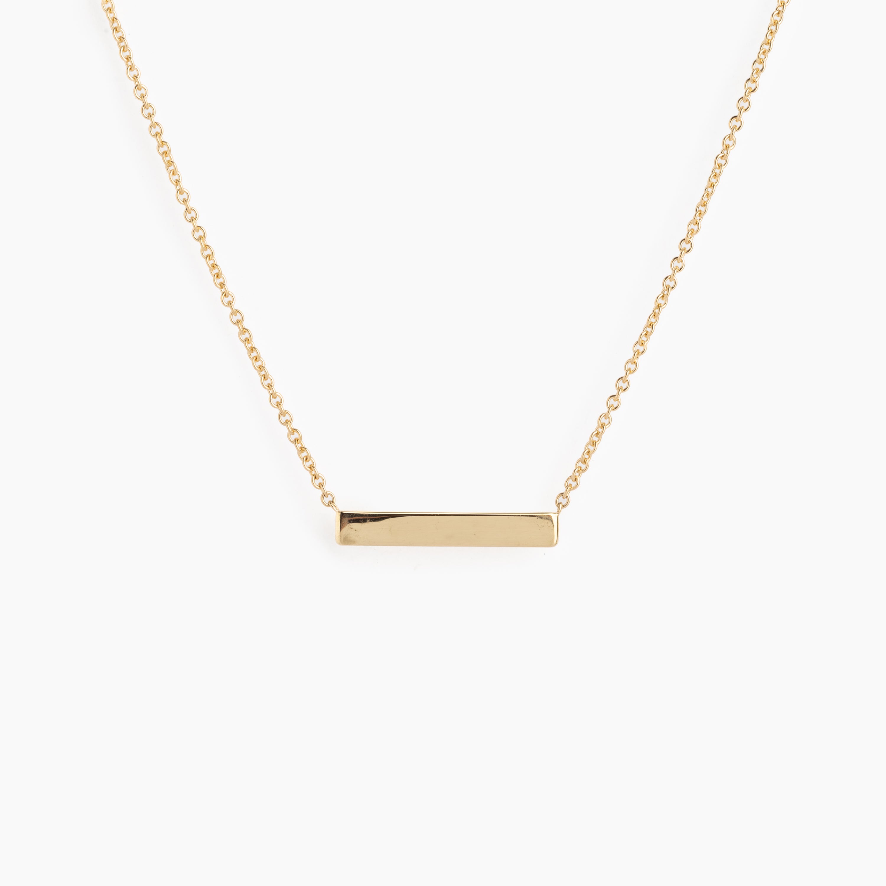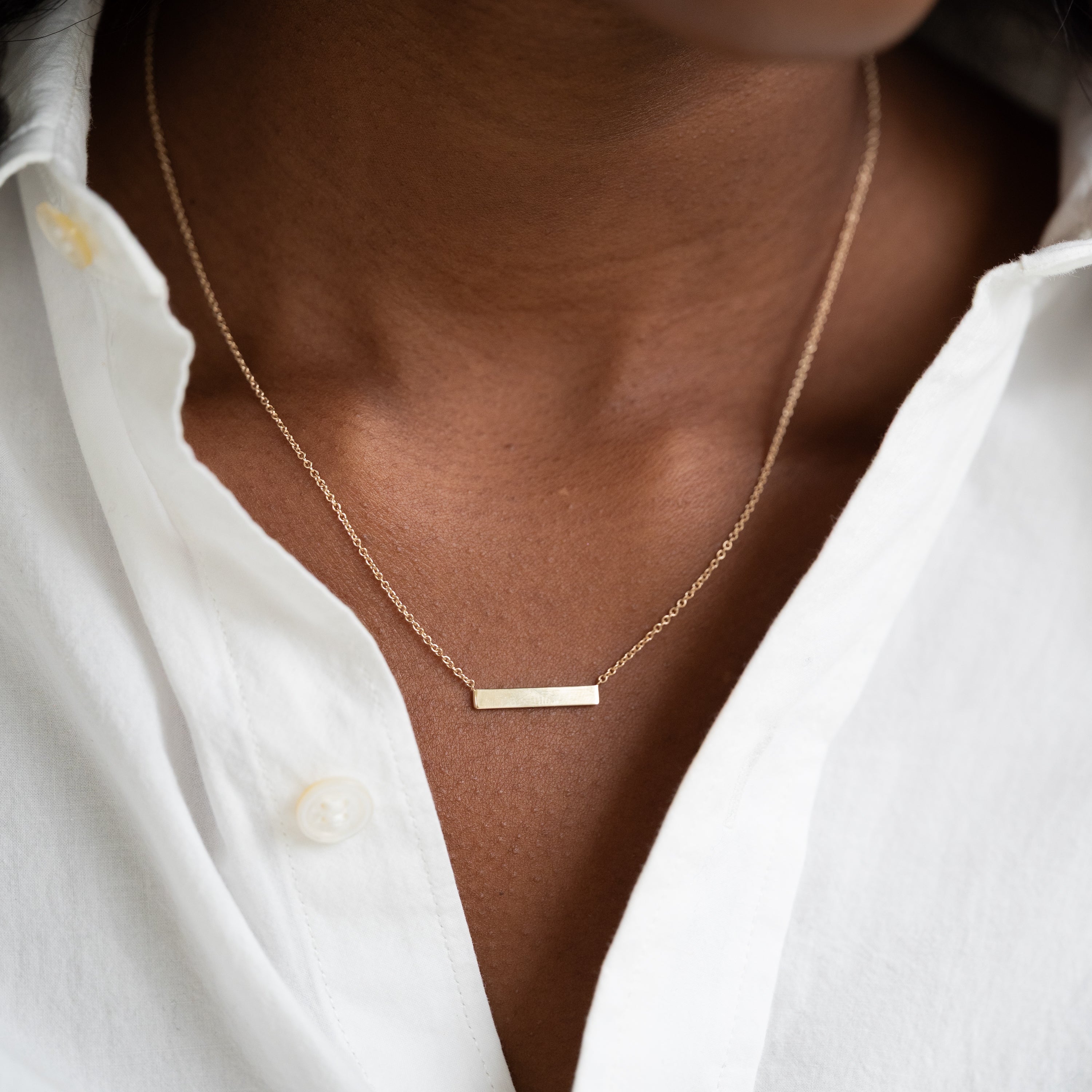 A horizontal bar necklace that can be machine engraved with your choice of 1 - 8 characters.