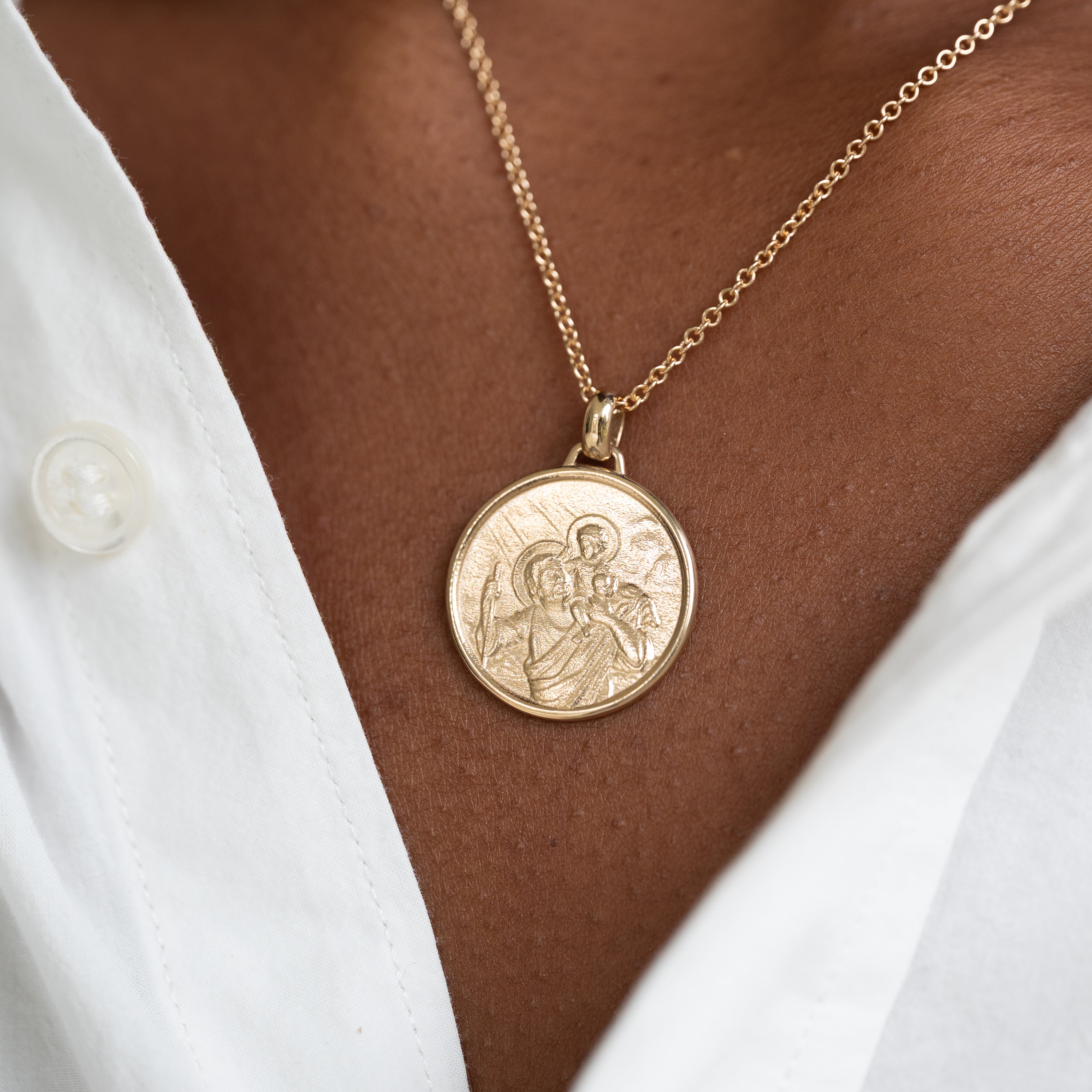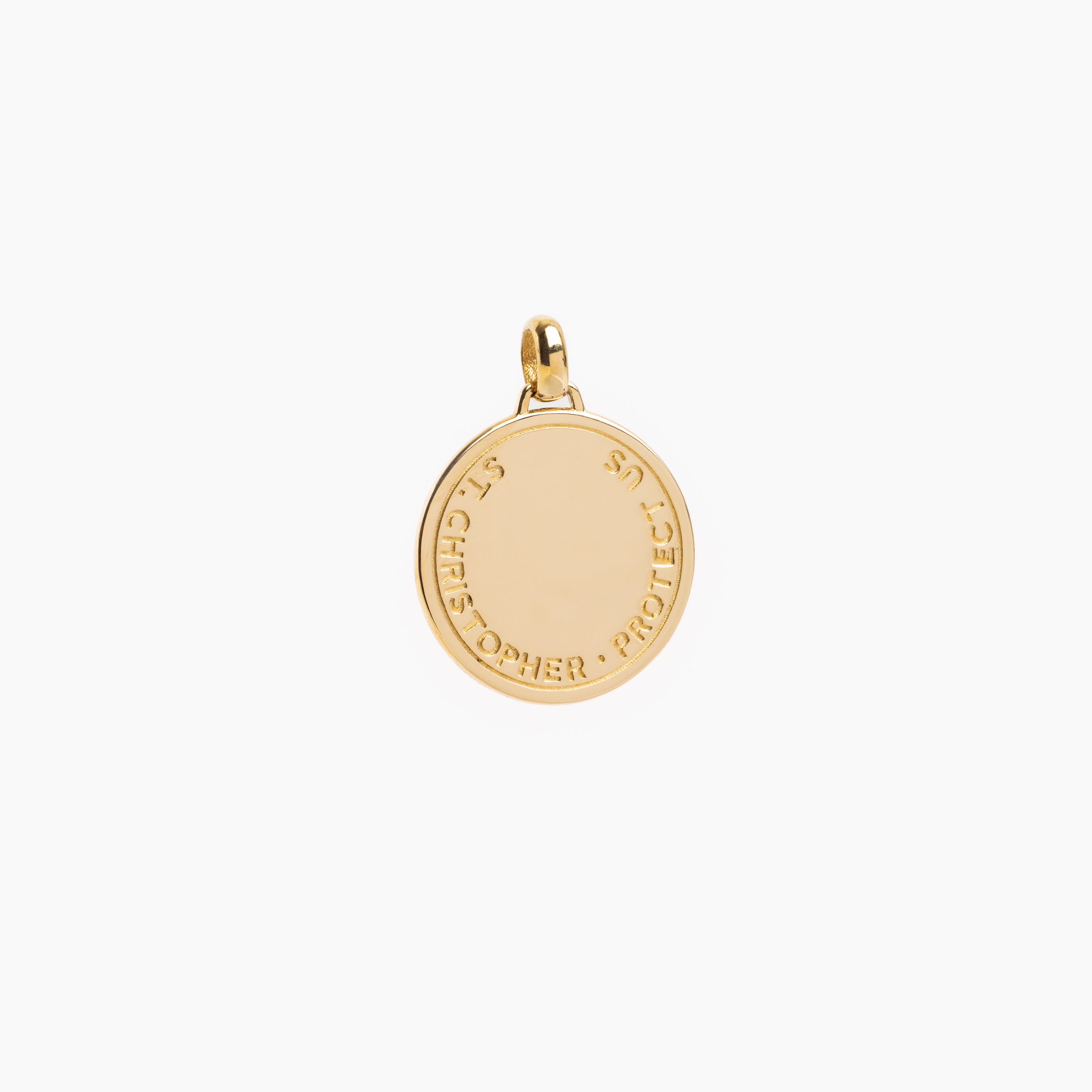 A 22 mm version of our St. Christopher medallion with a machine engraved monogram or date.