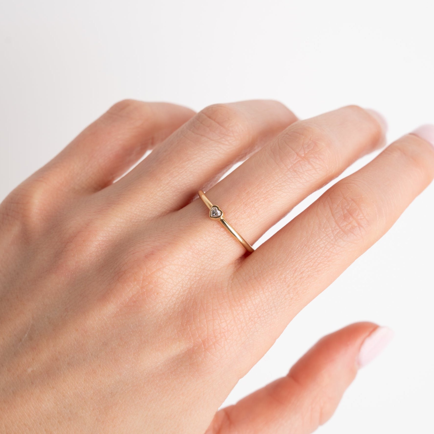 The Heart Diamond Stacker features a delicate heart-shaped diamond set in solid 14k gold on an Original stacker, designed to layer effortlessly or stand softly on its own. Subtle, meaningful, and endlessly wearable, it’s a piece you’ll reach for every day.