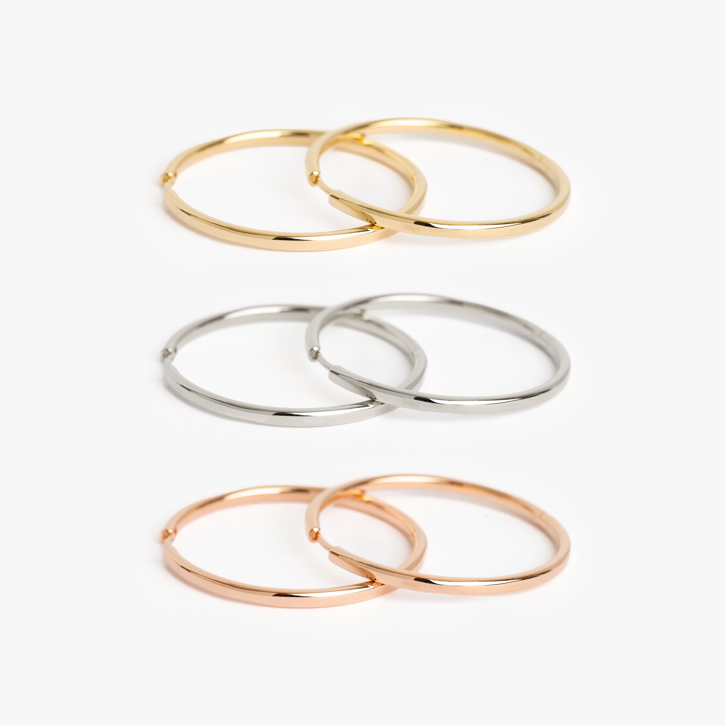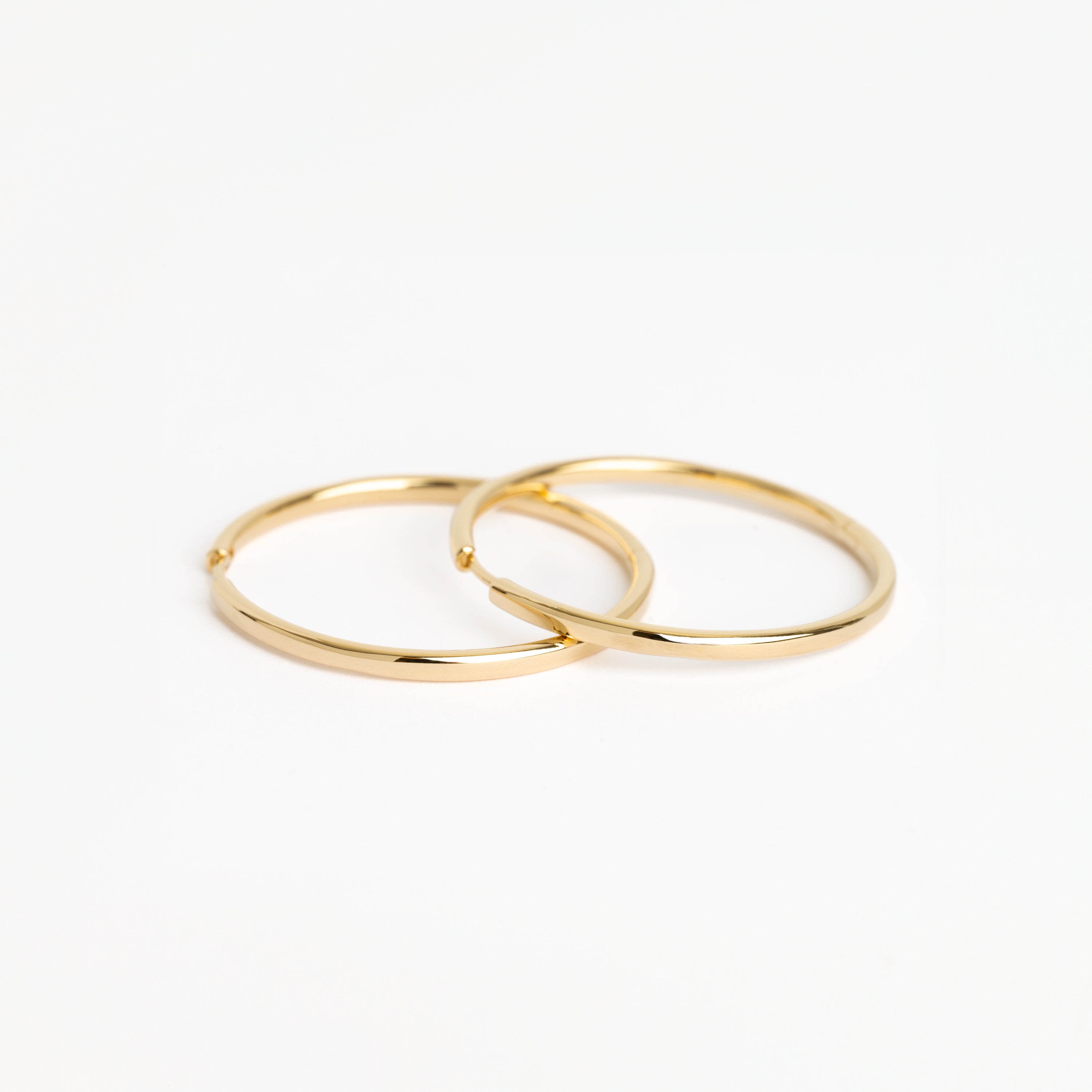 I have several pairs of smaller Yearly Co hoops, as well as the original threader hoops, but was really looking for a statement pair of hoops. This is that pair. Beautiful, love the “click” when you fasten them and security knowing they will stay put. Lighter than I expected given they are solid gold. Would love to see these in the hammered finish!