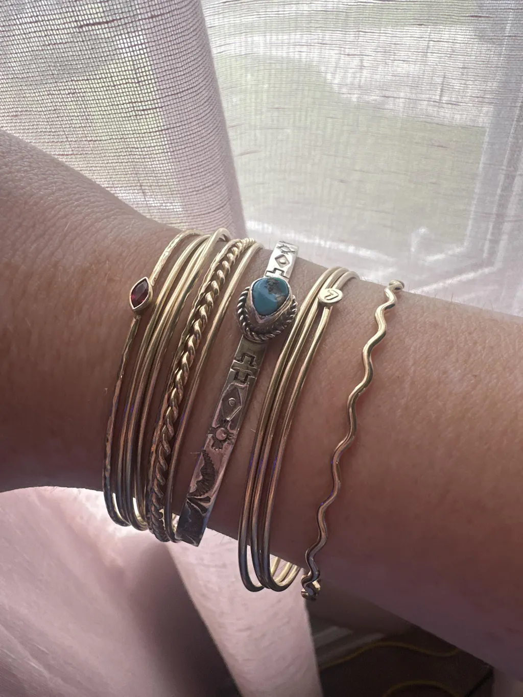 I ordered a custom style in the birthstone bangle! I added the hammered detail and I’m obsessed! Perfect addition to my stack! I did Ruby with plans to add a March and December bangle soon!