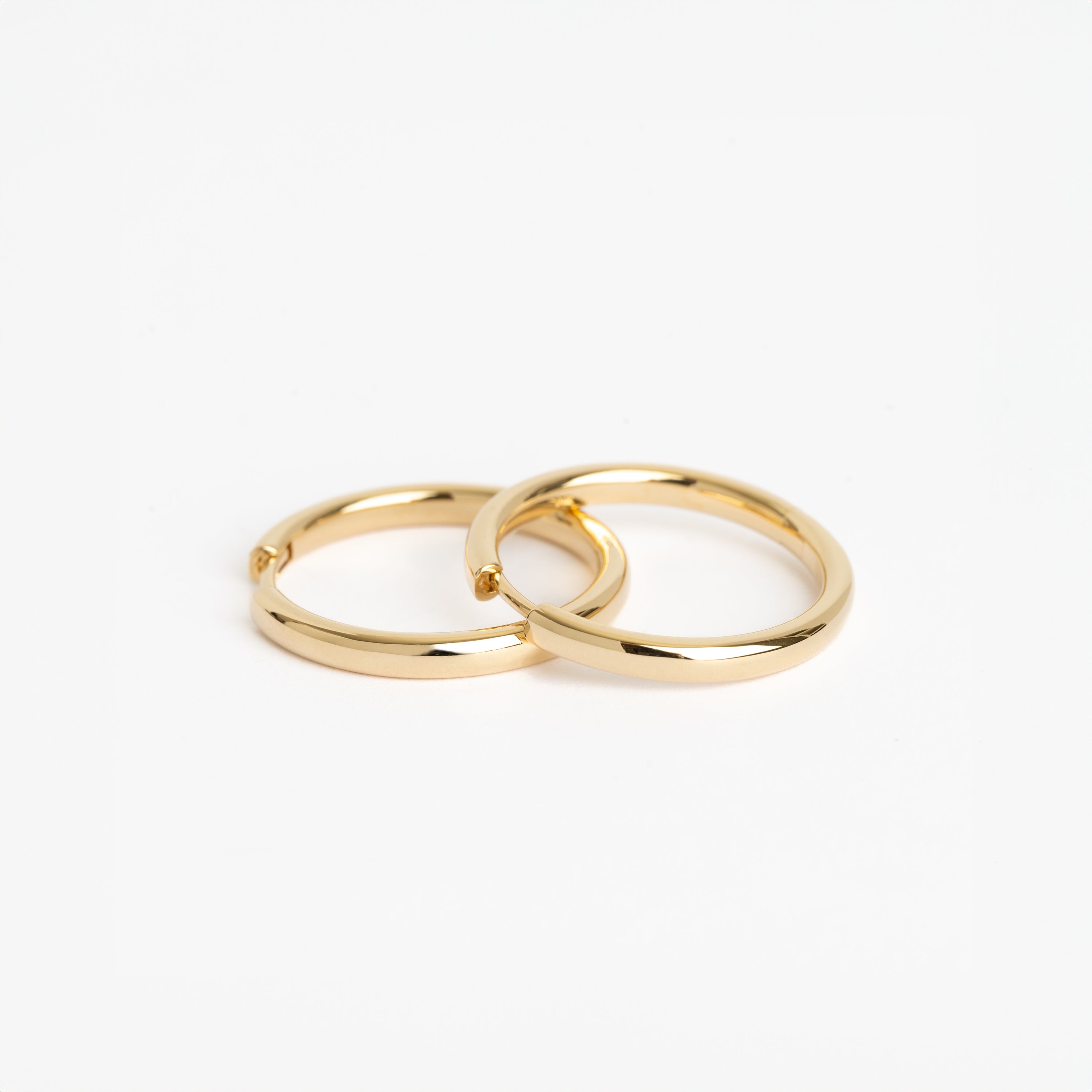 Add the perfect finishing touch to your outfit with our classic gold hoops. Available in 3 different sizes, these dainty hoop earrings are around 1" across and click closed with a hinge.
