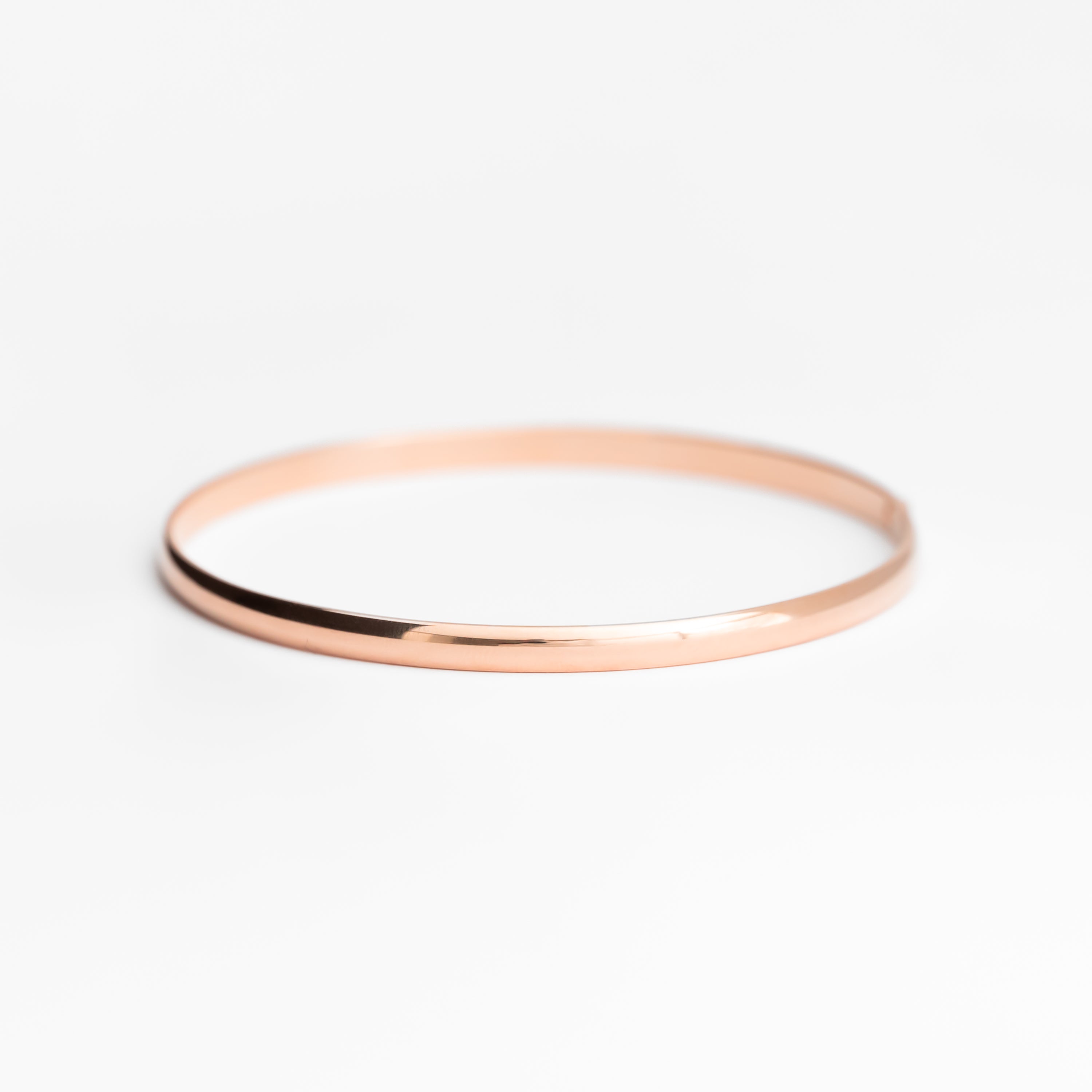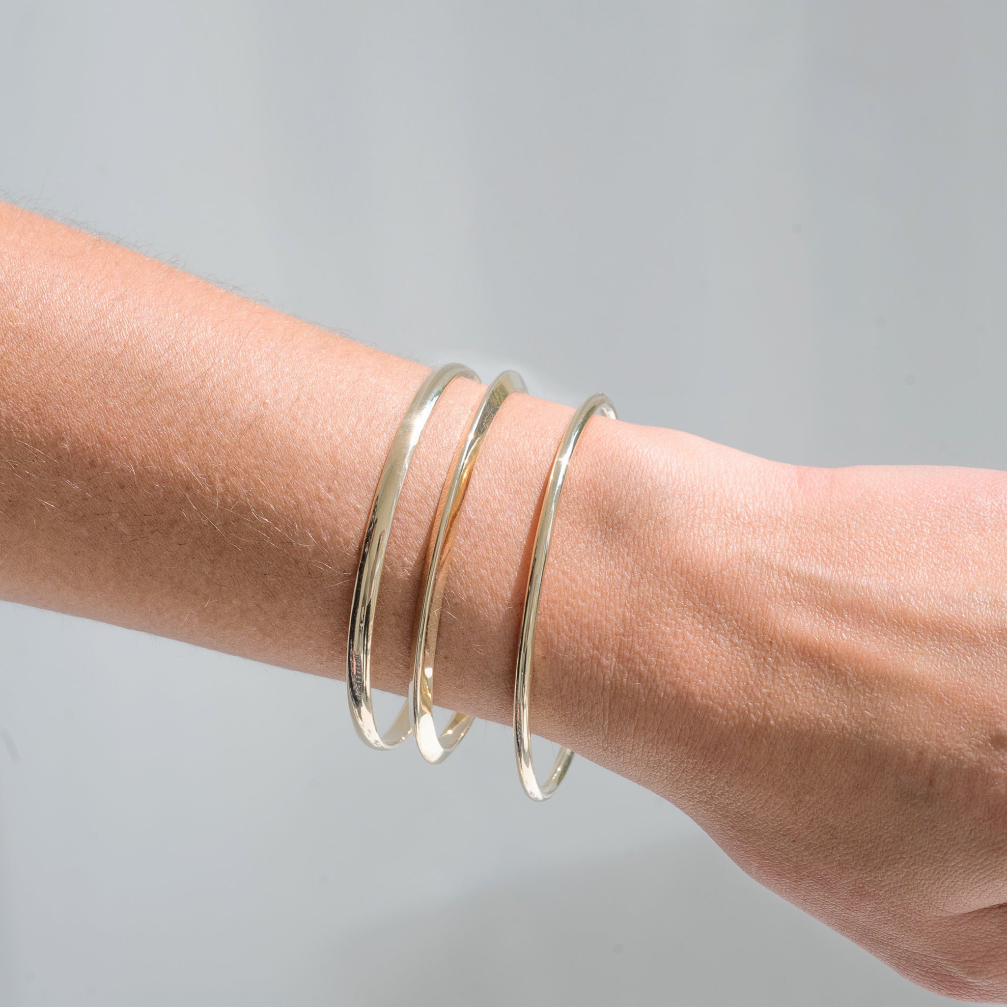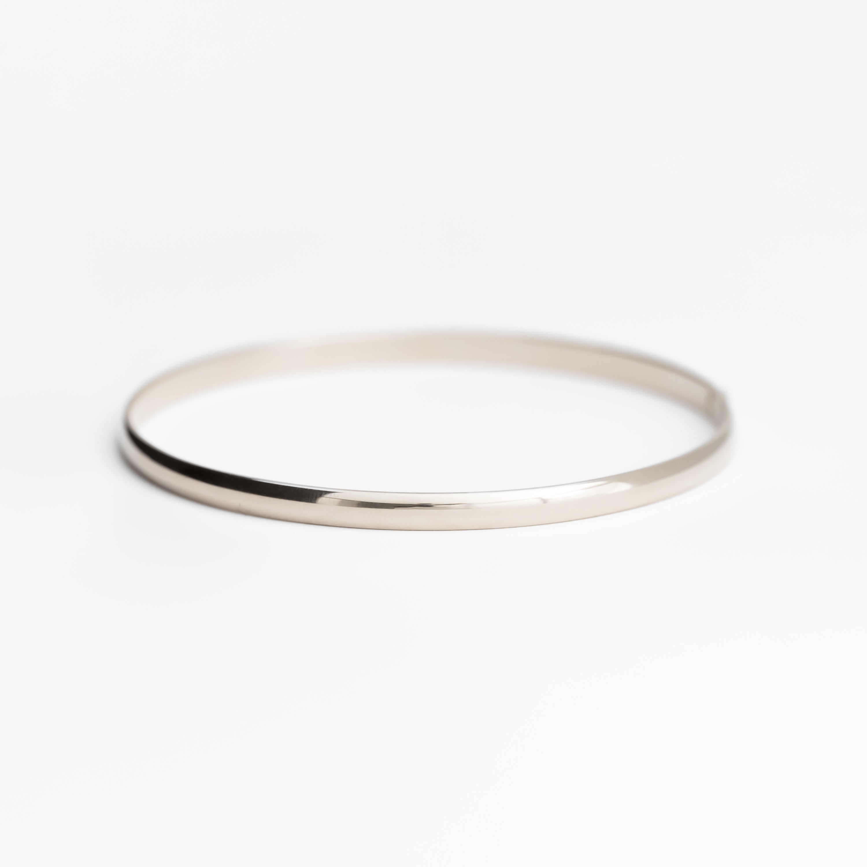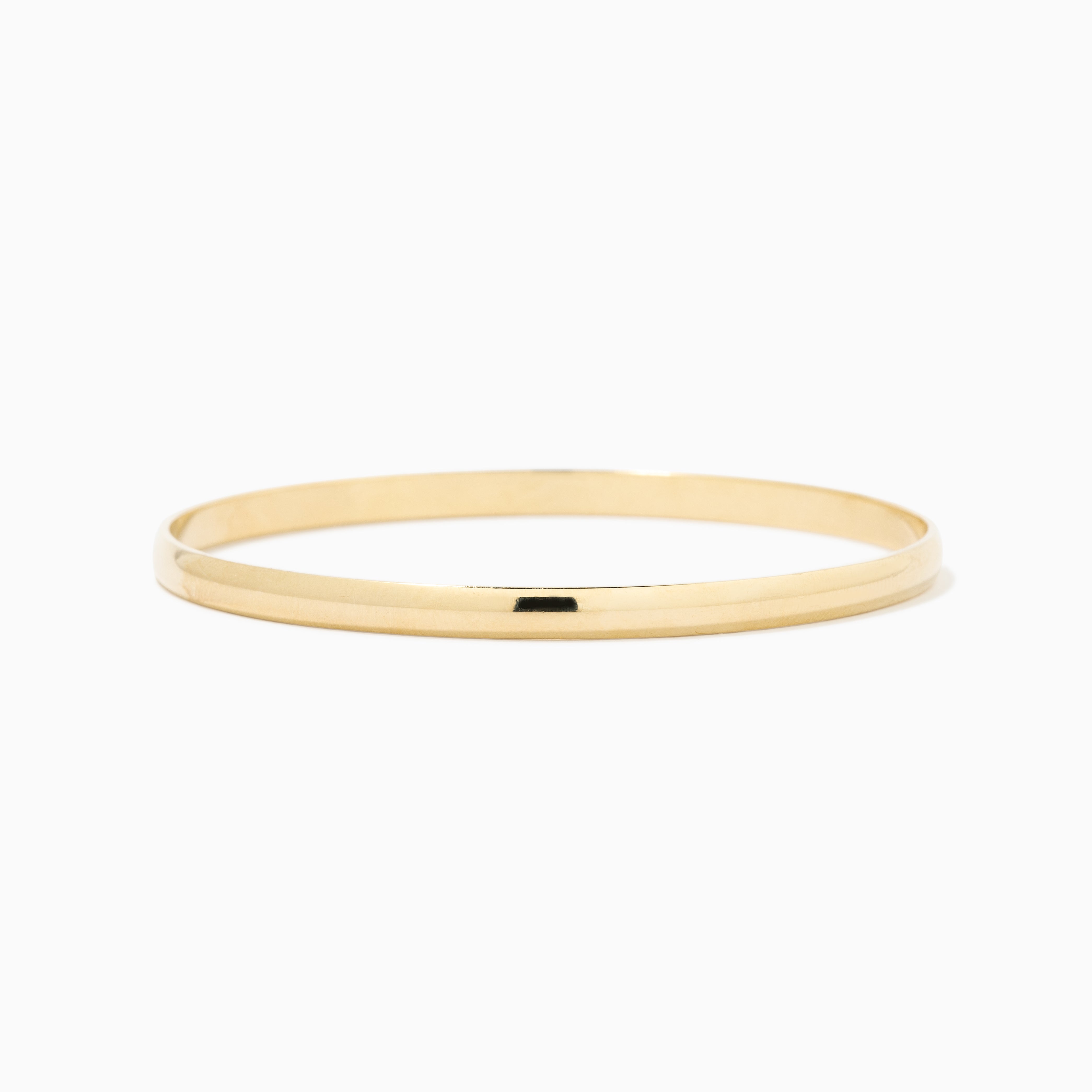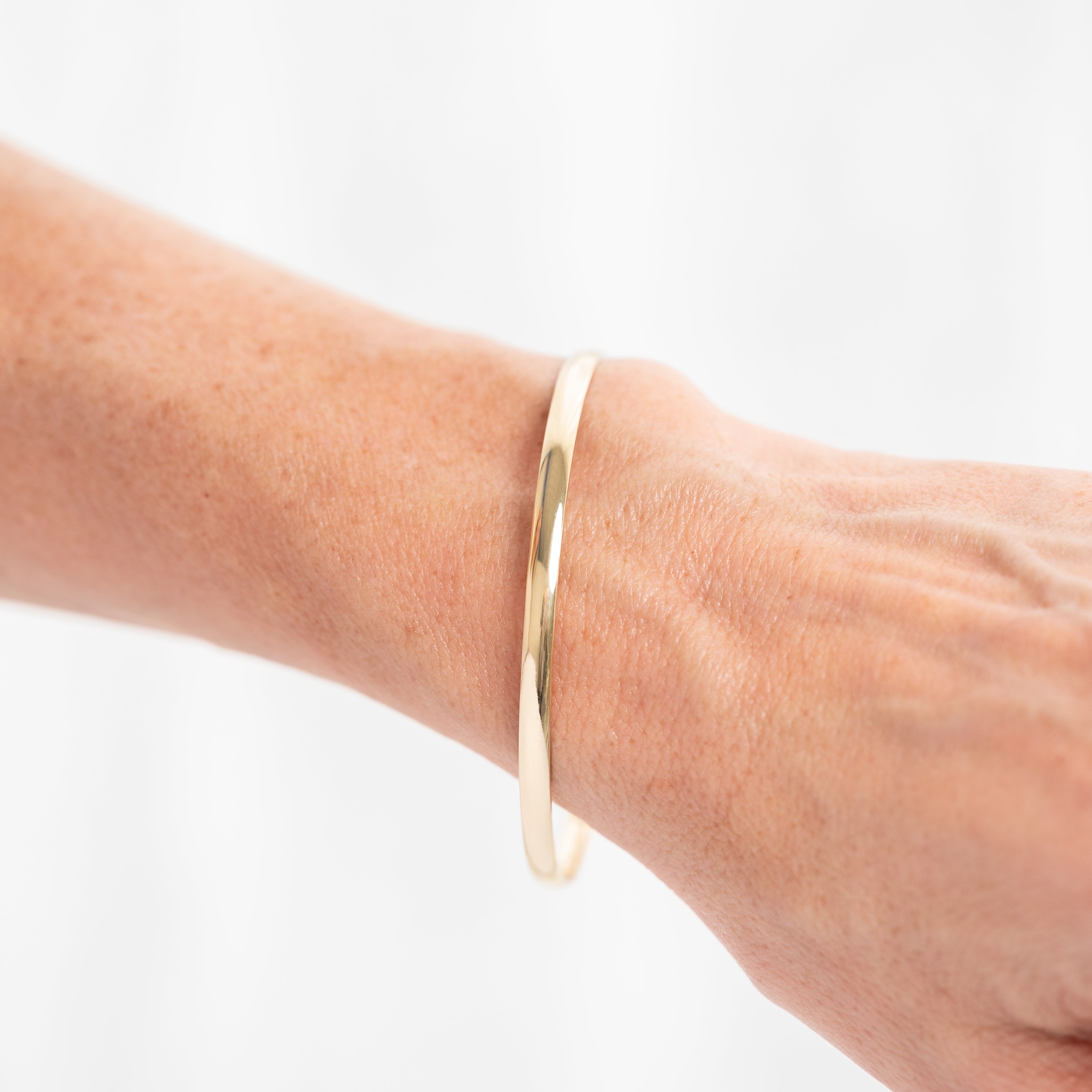 A 4mm solid 14k gold half round bangle with a flat interior.
