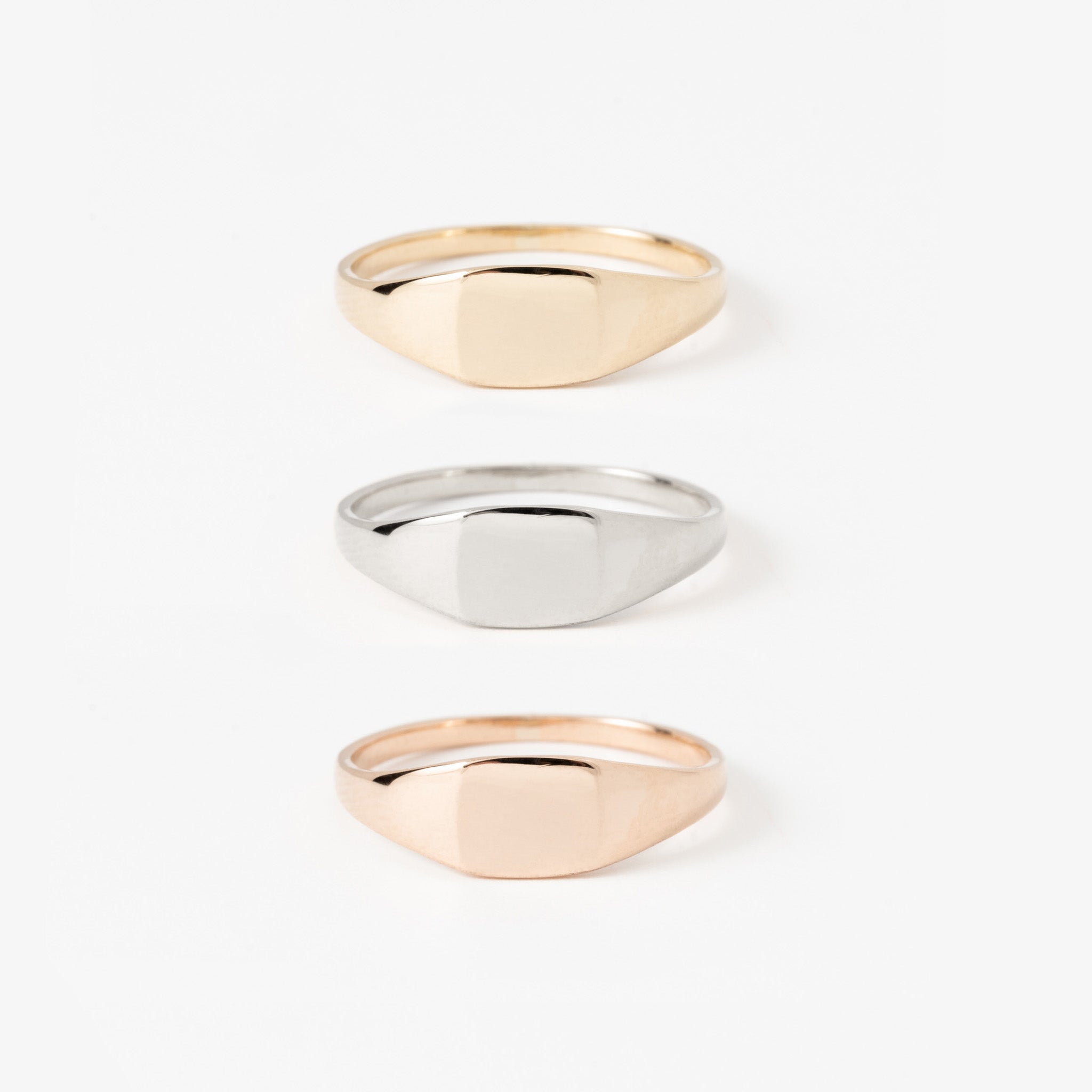 The Mini Signet Ring is inspired by Ann's baby signet engraved with a single letter and kept as a lifelong heirloom. This ring is ideal for a pinky, a dainty accent, or for a younger girl on her most special occasions.