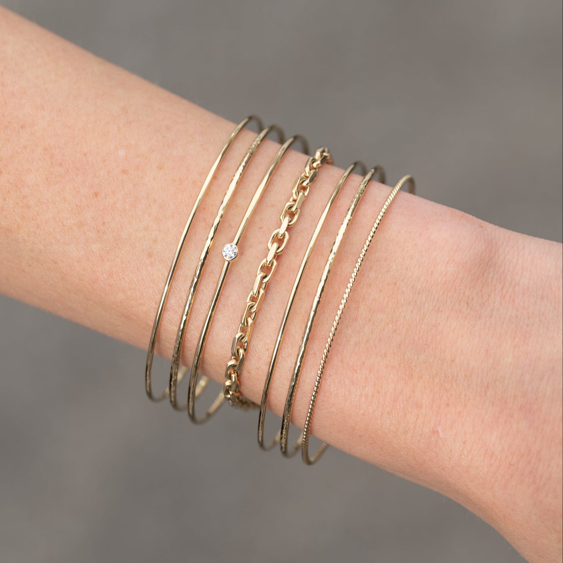 The Mini Square Chain Link Bracelet brings a timeless edge to your everyday. Crafted in solid 14k gold, each link catches the light with subtle shine, creating a delicate yet distinctive silhouette. Designed to be worn solo or layered with your favorite bangles, this classic chain is made to last, year after year.