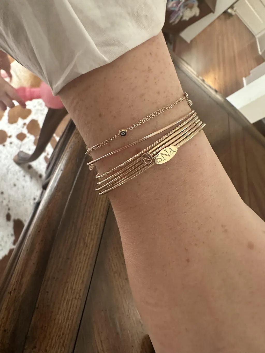 The Monogram is a favorite, even though it's really hard to pick a favorite... I love the oval shape and the exquisite hand monogramming on this bangle! It feels like my stack is complete, but I know it's not. :)
