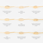 The Heavy Weight solid 14k gold bangle customized with a hand-engraved date, word, or a traditional monogram.