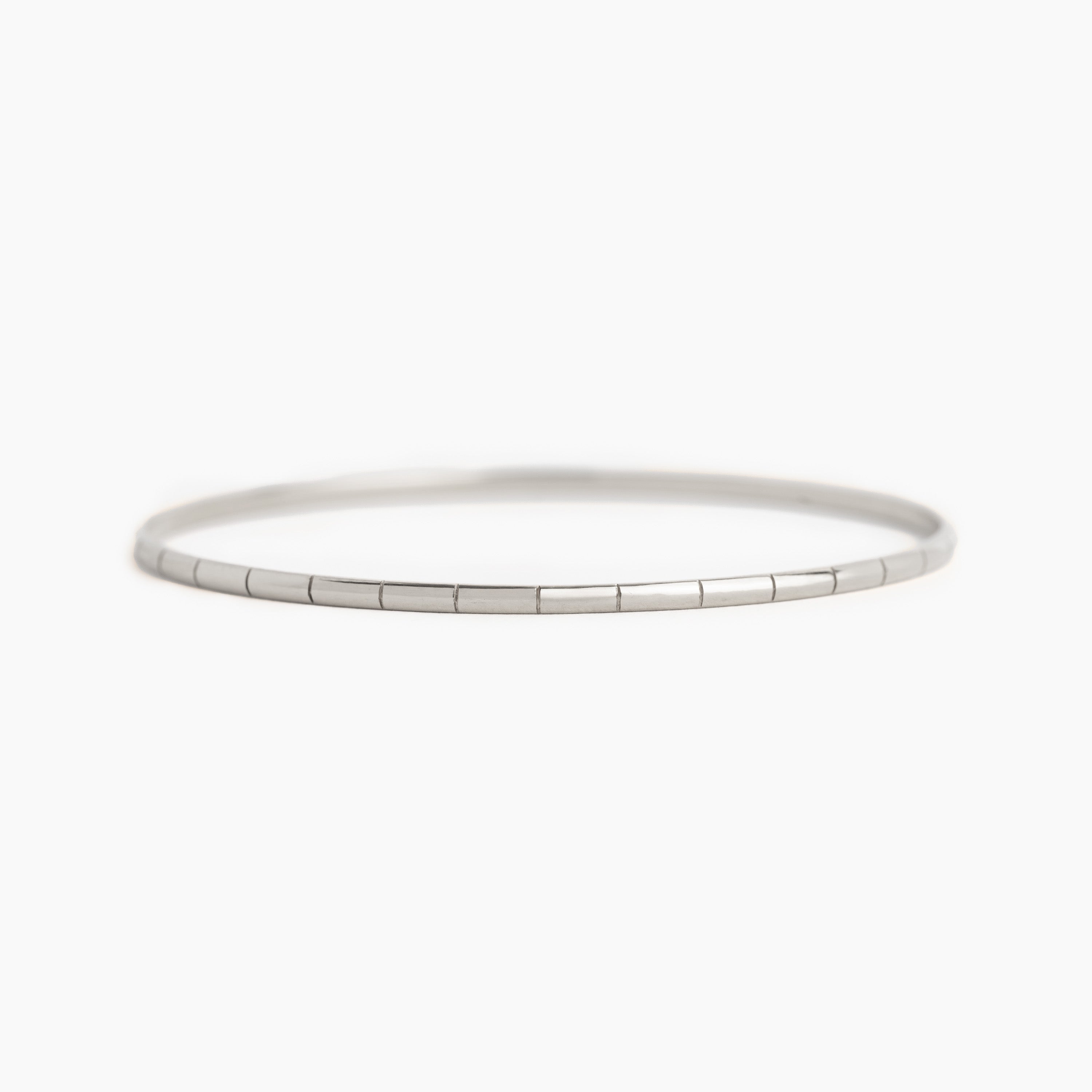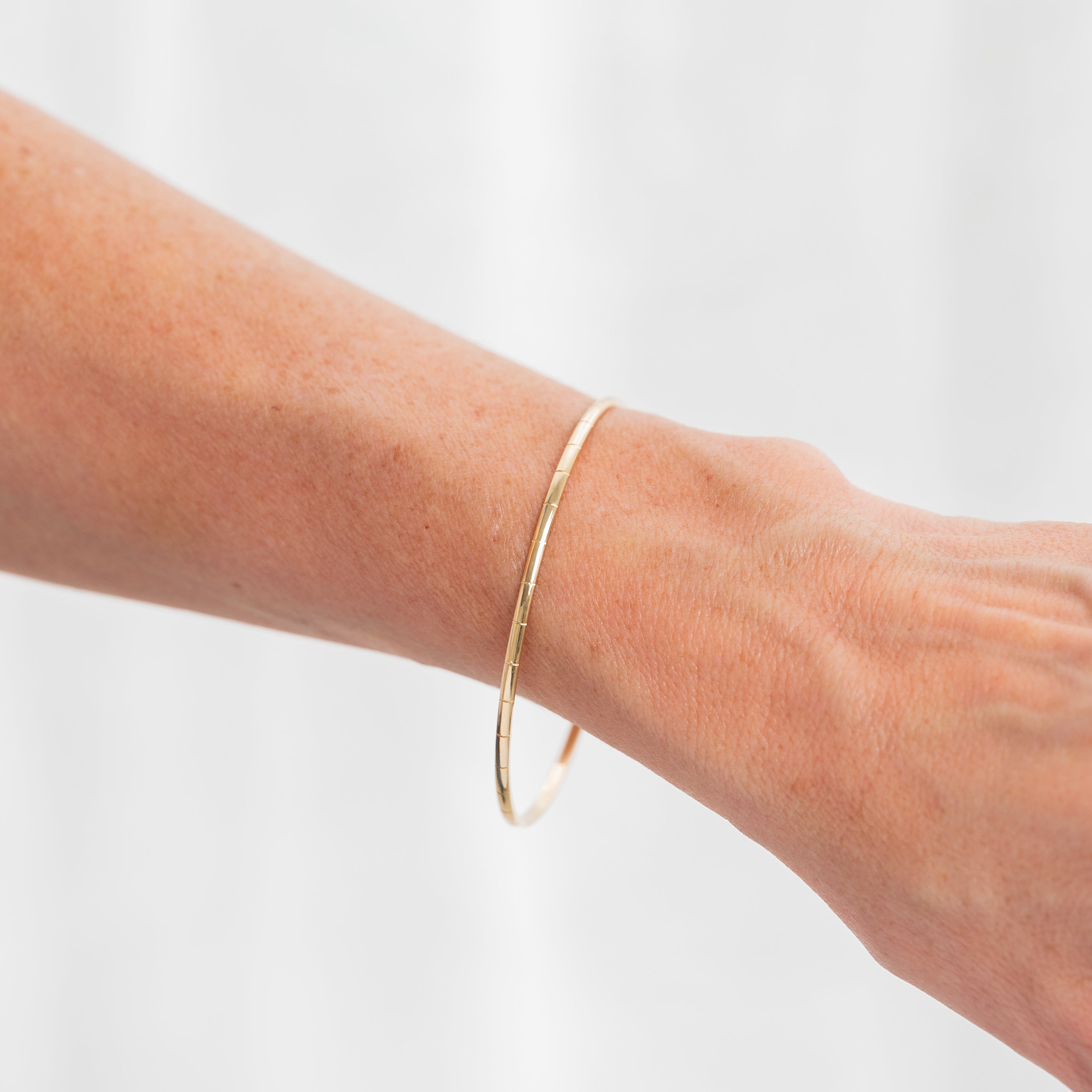 Evenly Spaced: Without a specific number or pattern, notches are spaced evenly around the bangle for a classic textured look.
