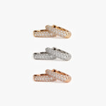 The Pavé Diamond Hoops are crafted in solid 14k gold and set with a row of natural diamonds for subtle shimmer. Designed with a secure click-closure and lightweight feel, these classic hoops are made for every day wear—from school drop-offs to special occasions. A refined staple you’ll reach for again and again.