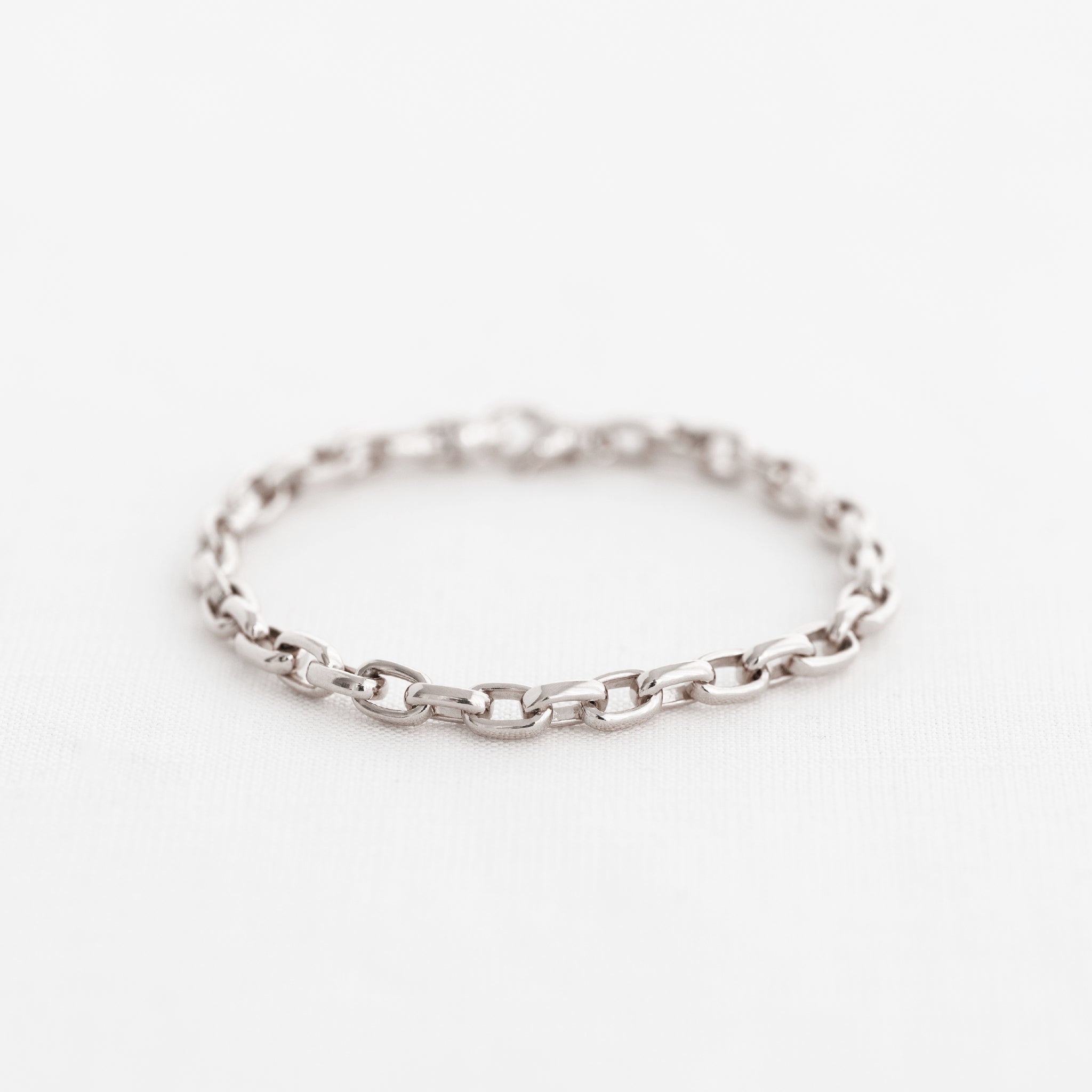 A squared link bracelet. Uniform links form a timeless and chunky chain with a solid feel. Feeling both modern and vintage at the same time.