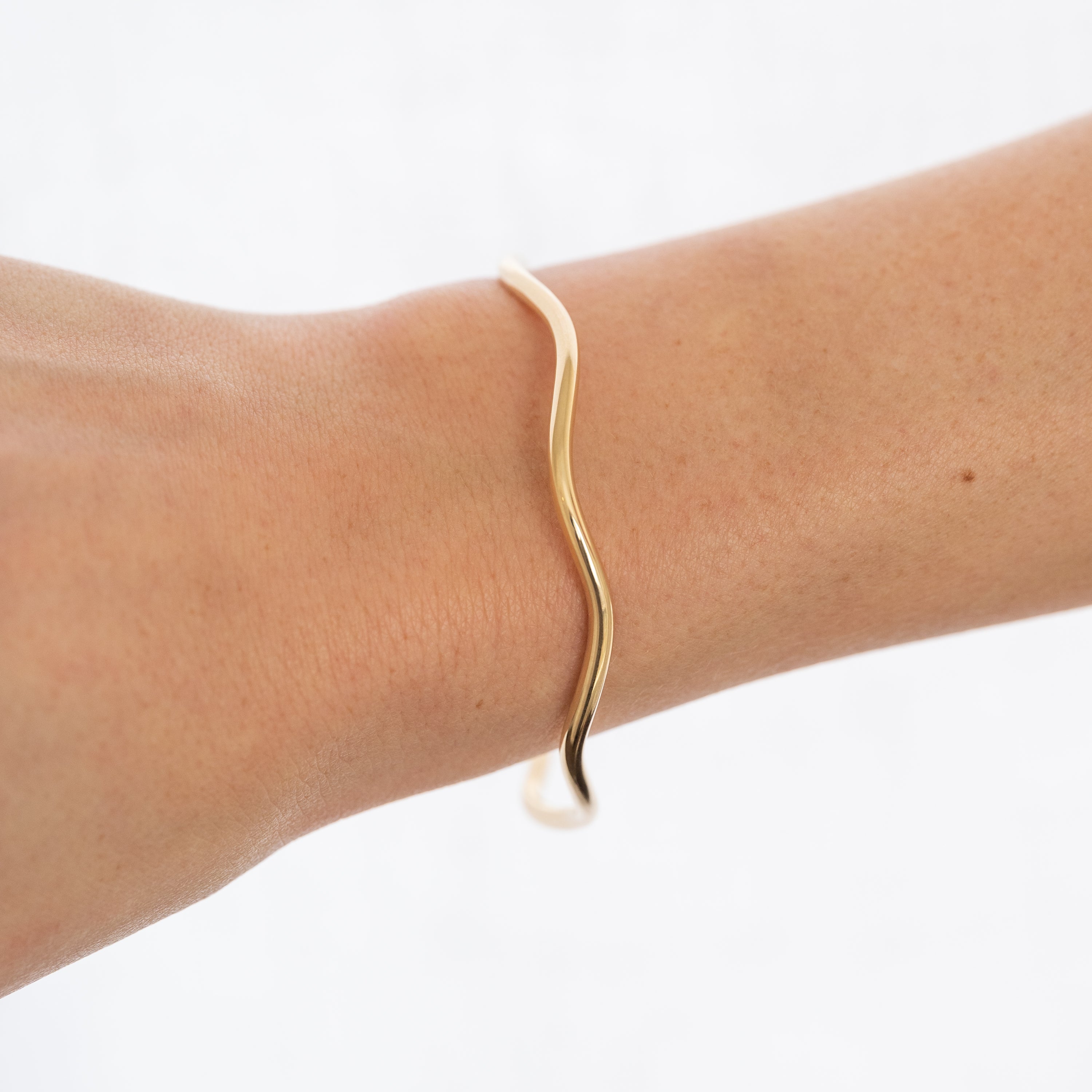 The graceful curve of The Thick Ripple Bangle mirrors the ripples created by a single drop of water, spreading outward with purpose and impact. A timeless symbol of connection, this piece is crafted to celebrate the power of small, meaningful actions.