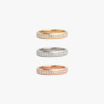 The Thick Pavé Band is solid 14k gold with diamond accents. The most beautiful addition to a ring stack or to wear solo. We matched the design to our popular bangle styles to give you solid, durable and sparkly diamond eternity bands you can wear and enjoy every day.